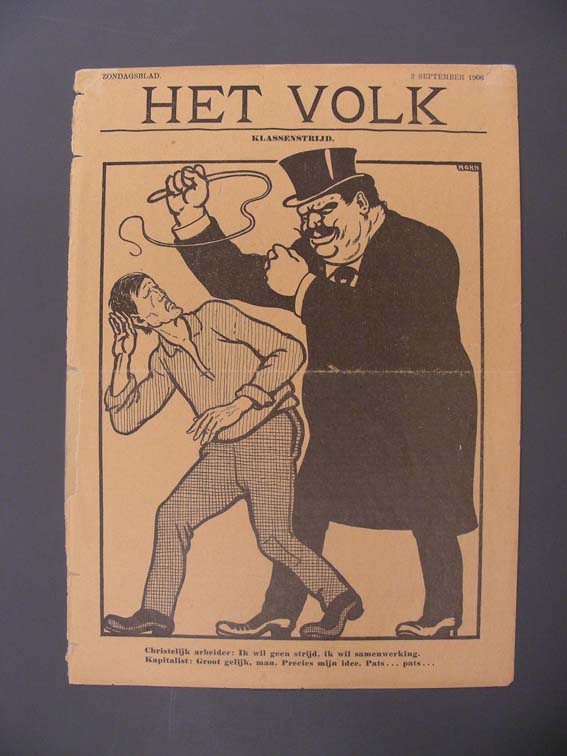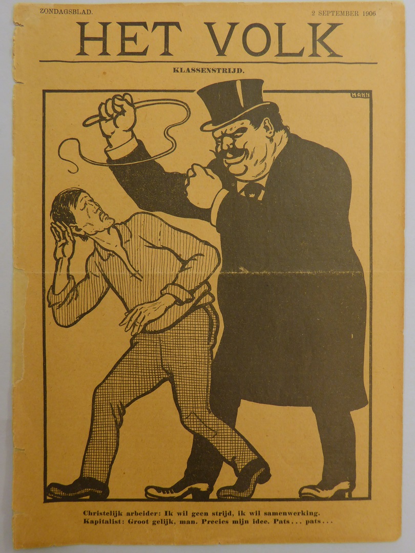 "Christelijk arbeider: Ik wil geen strijd, ik wil samenwerking: kapitalist: grootgelijk ..."