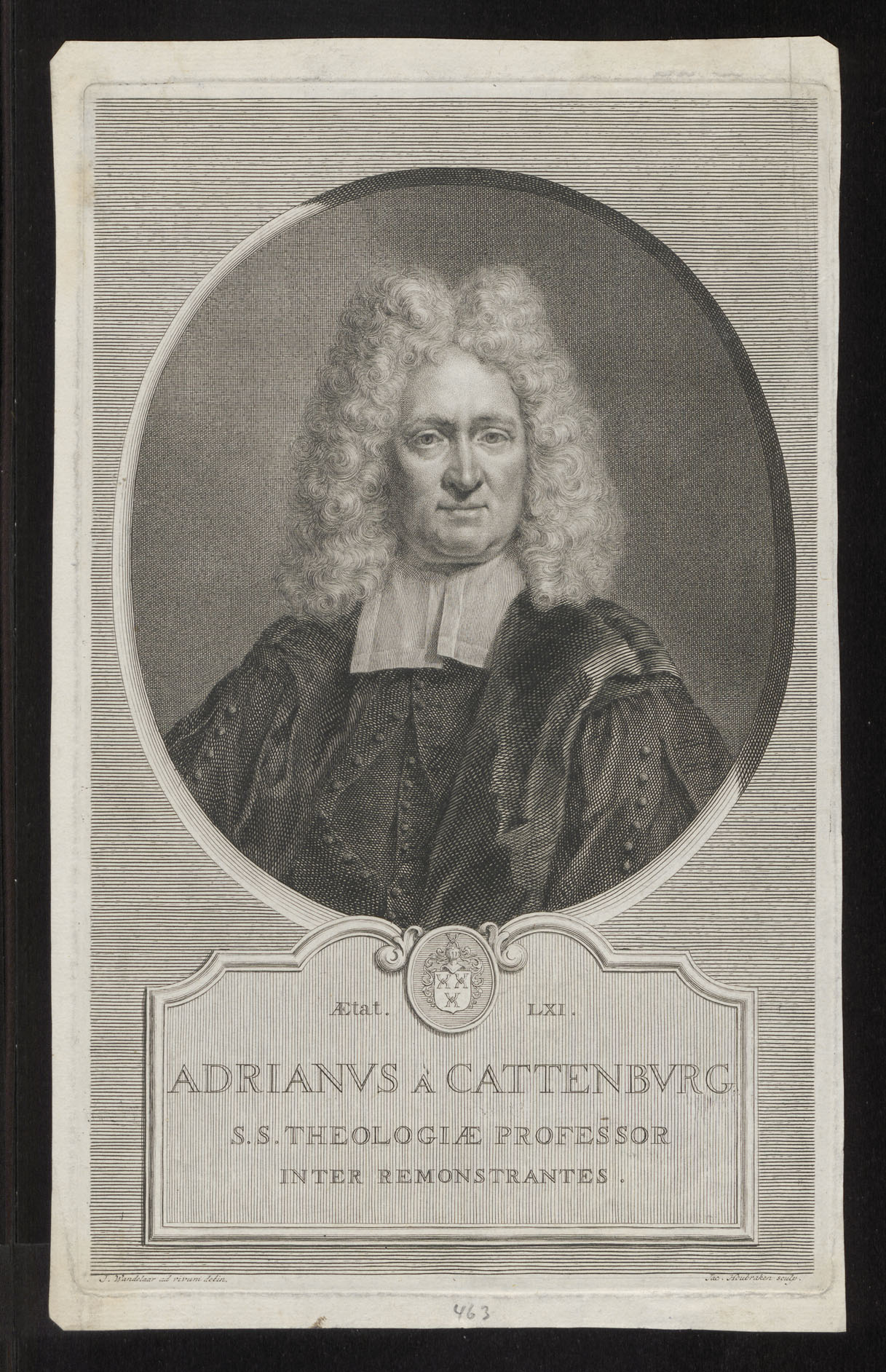 Portret van Adrianus Cattenburch (1664-1743), remonstrants hoogleraar en predikant te Rotterdam, Amsterdam