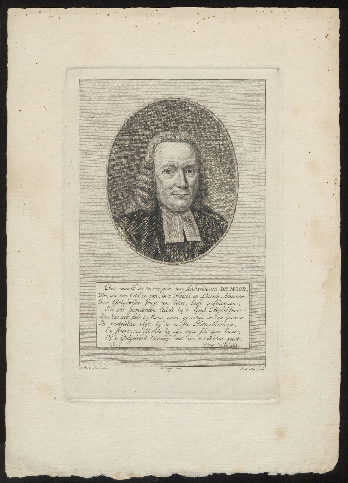 Portret van Bernhardinus de Moor (1709-1780), predikant te Leiden