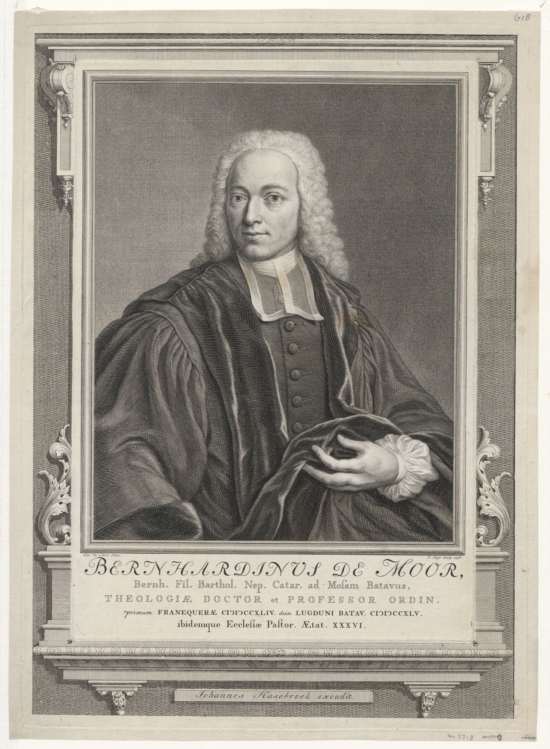 Portret van Bernhardinus de Moor (1709-1780), predikant te Leiden en Franeker
