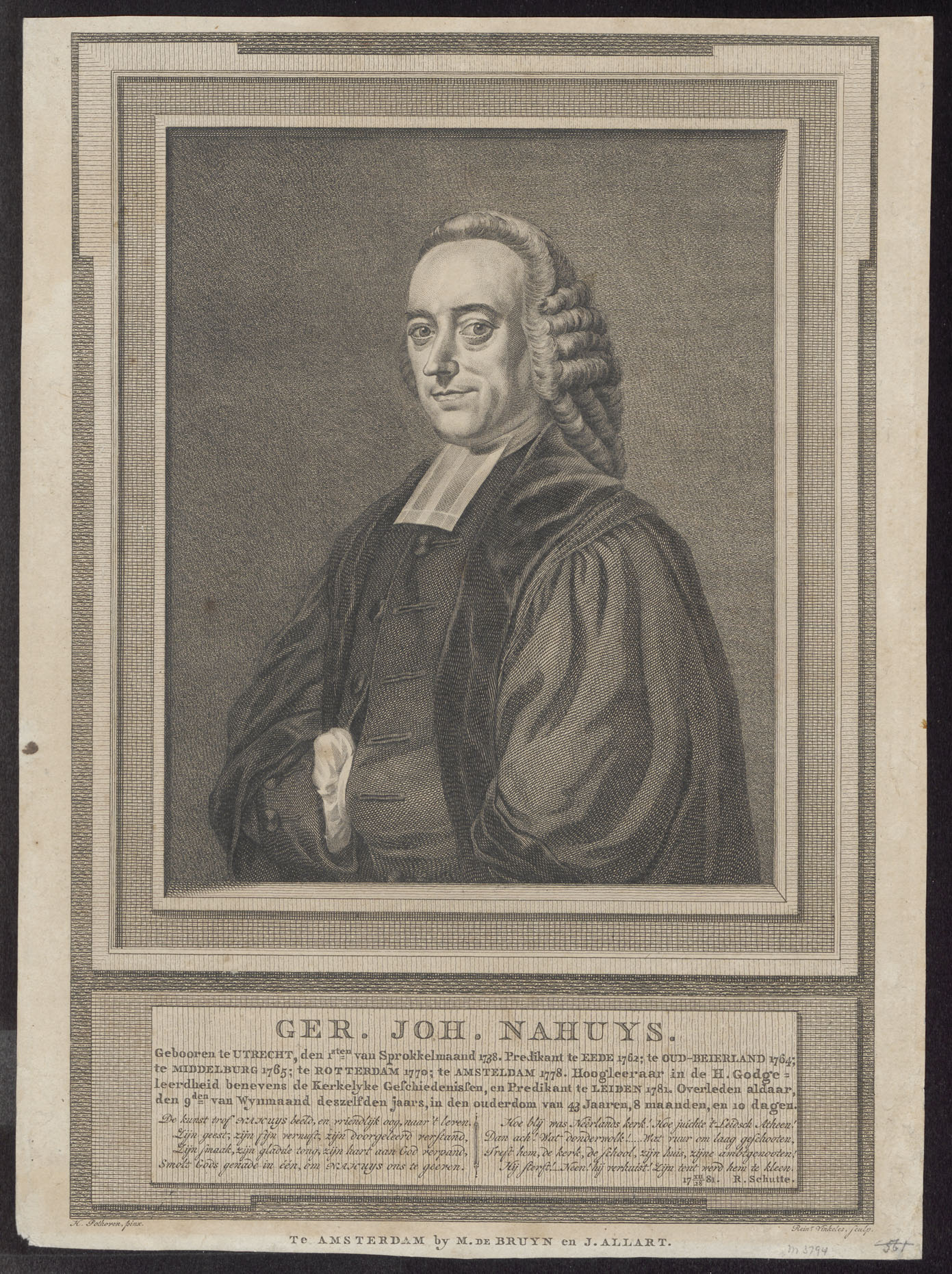 Portret van Gerard Johan Nahuys (1738-1781), predikant te Leiden, Ede, Oud-Beijerland, Middelburg, Rotterdam, Amsterdam