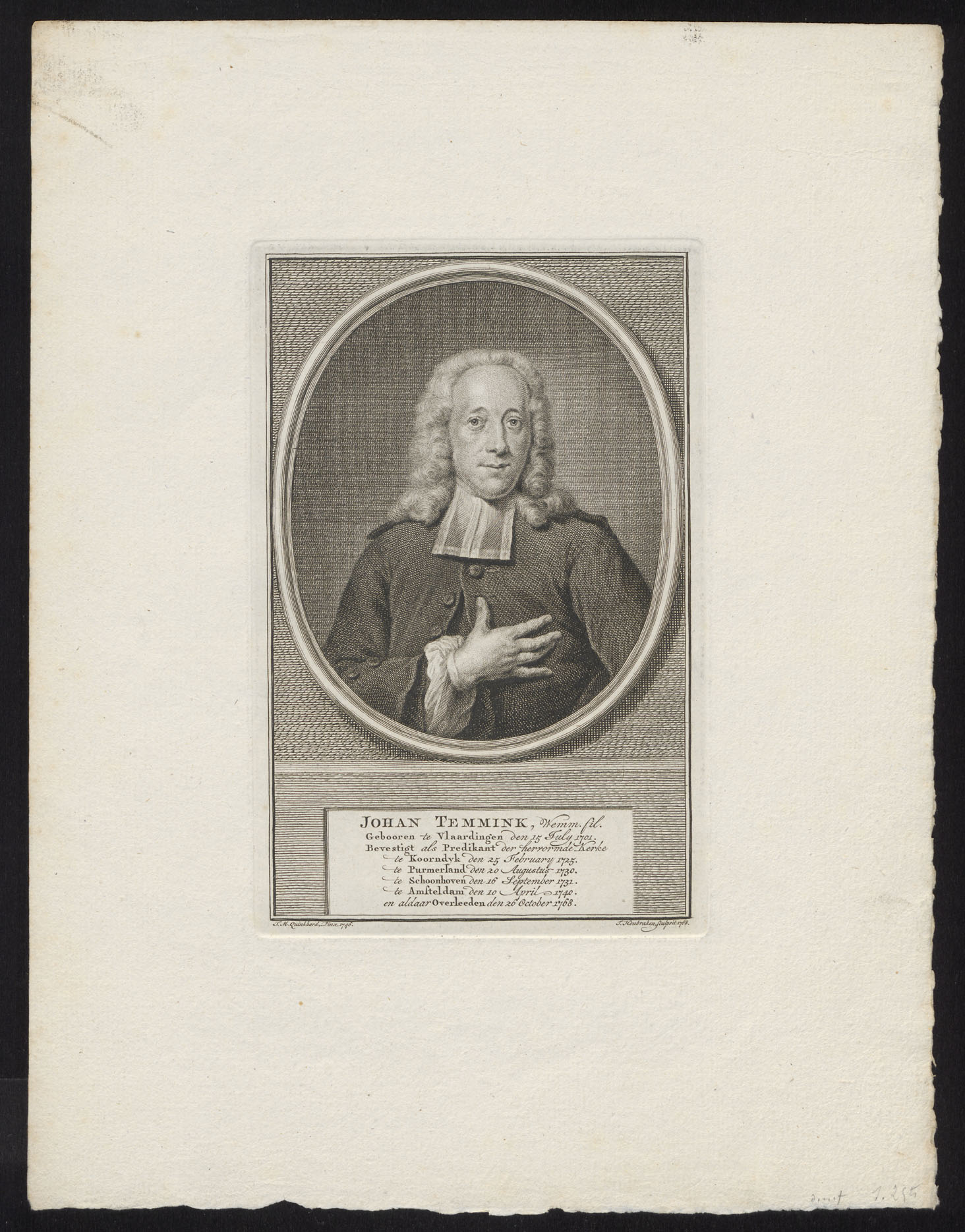 Portret van Johan Temmink (1701-1768), predikant te Amsterdam