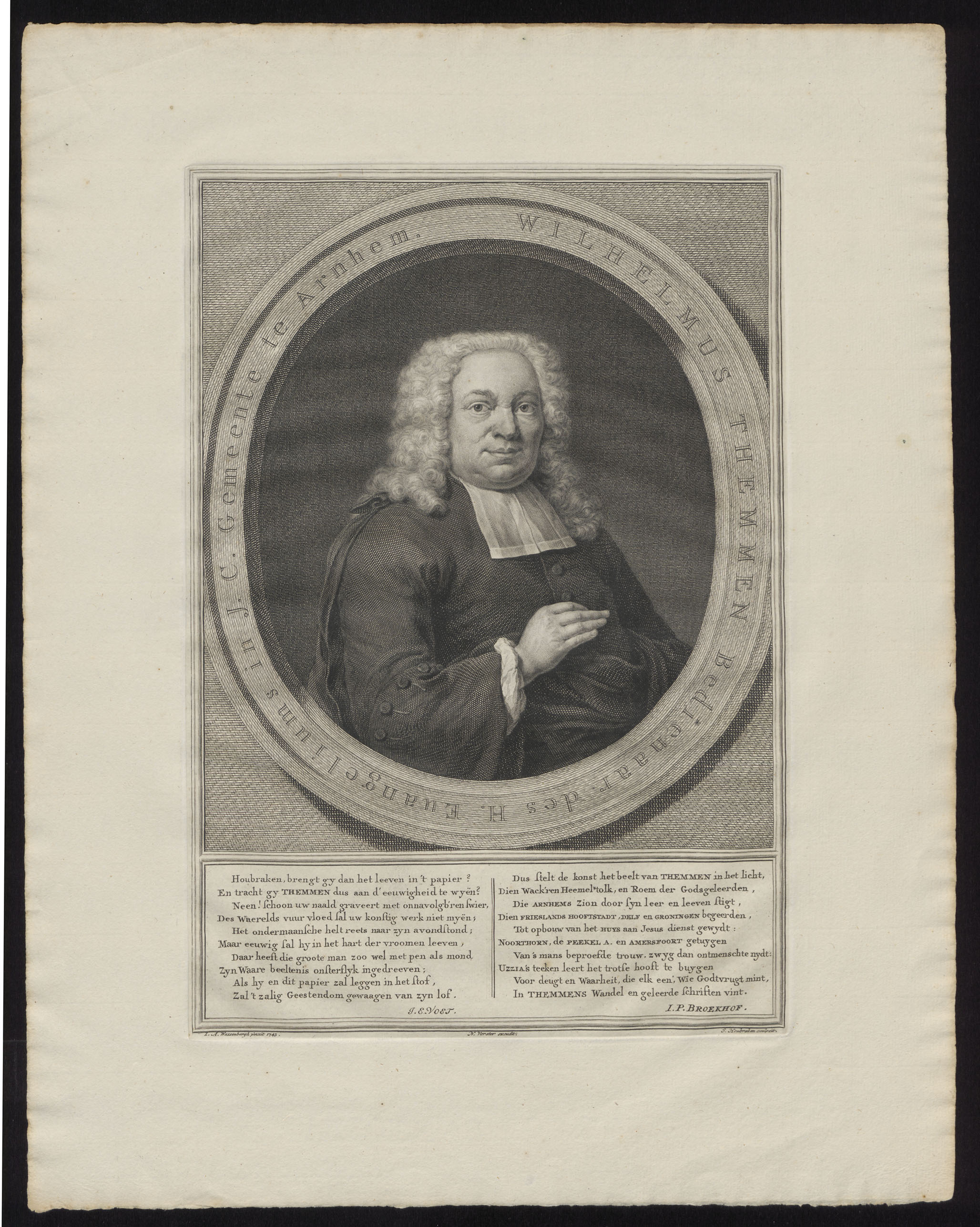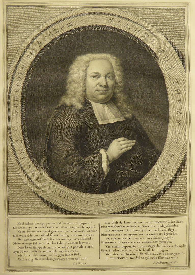 Portret van Wilhelmus Themmen (1696-1764), predikant te Arnhem