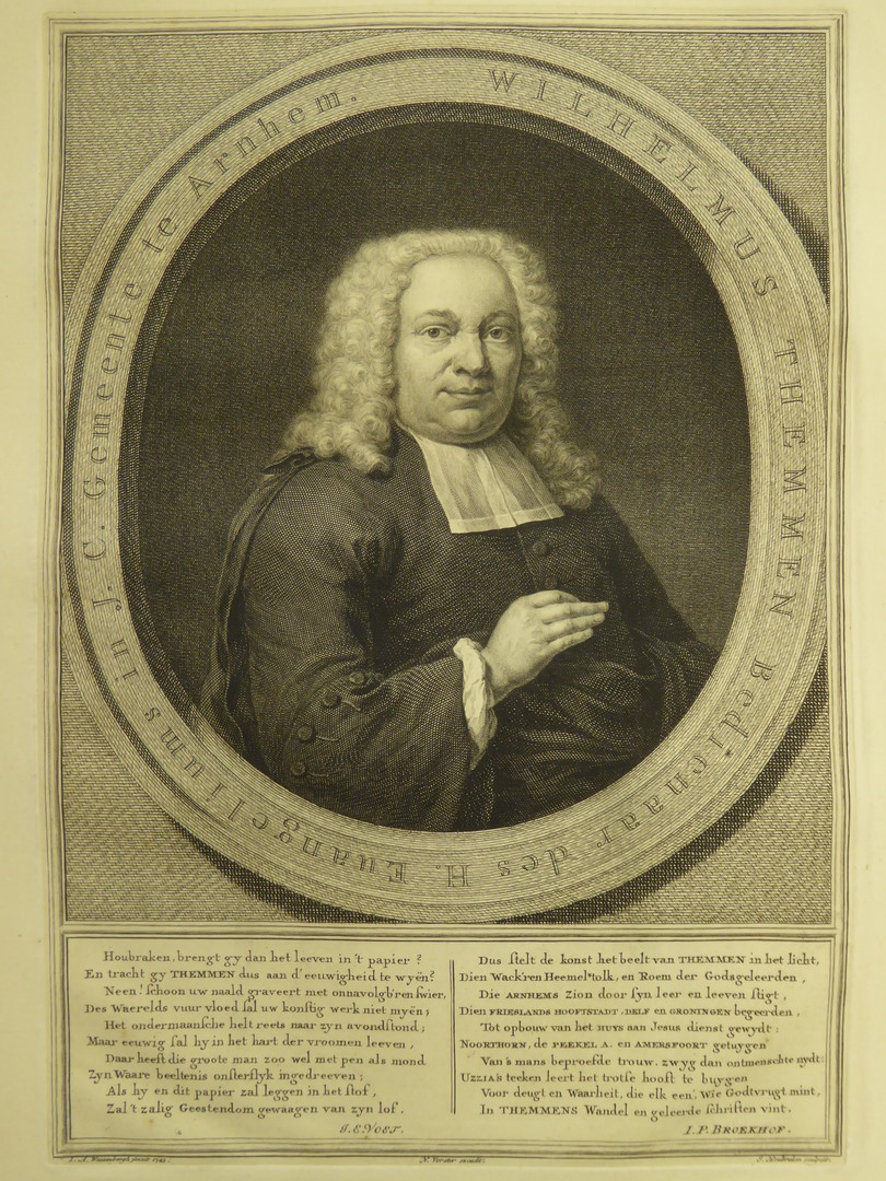 Portret van Wilhelmus Themmen (1696-1764), predikant te Arnhem
