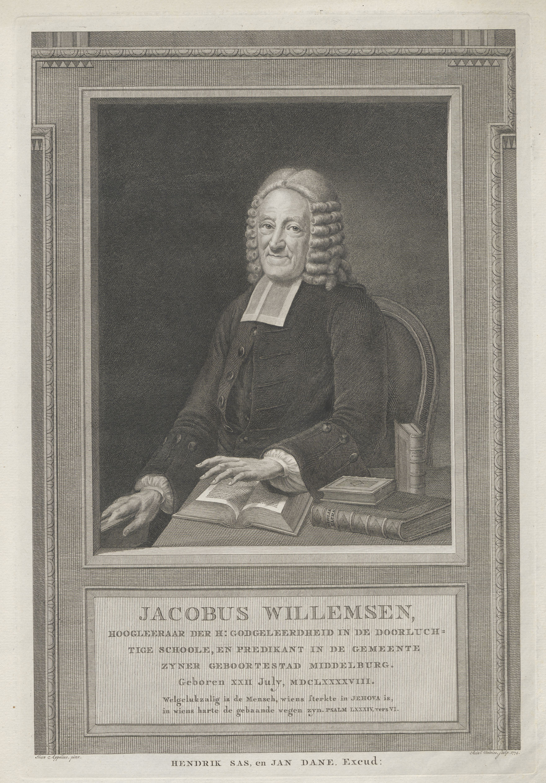 Portret van Jacobus Willemsen (1698-1781), predikant en hoogleraar te Middelburg