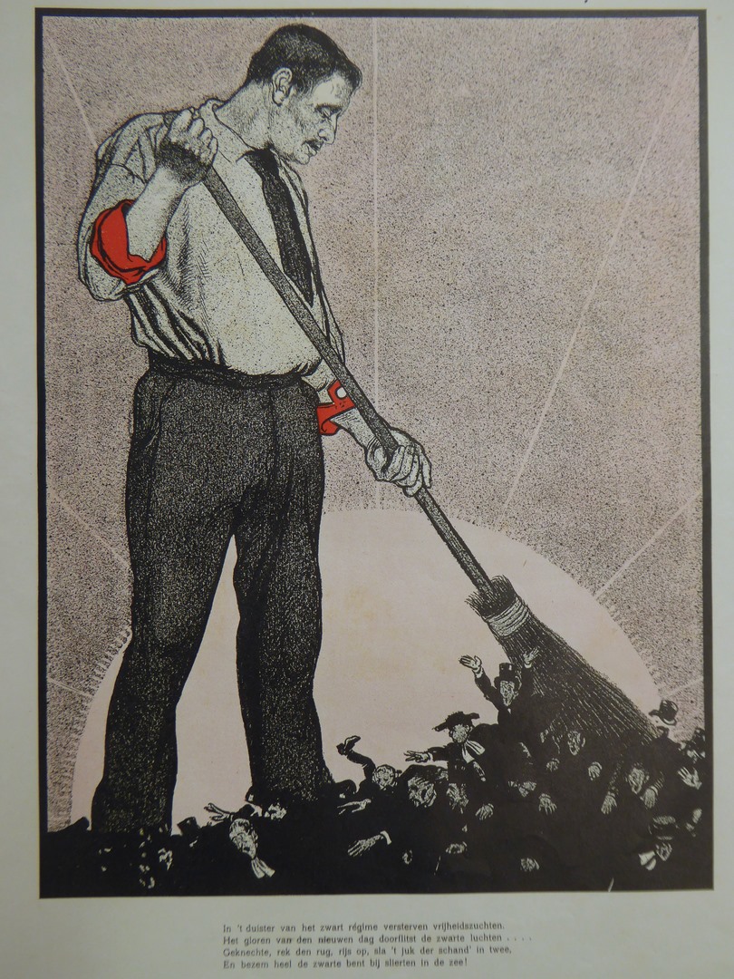 'Onder zwart regime' karikatuur: In 't duister van het zwart regime versterven vrijheidszuchten...