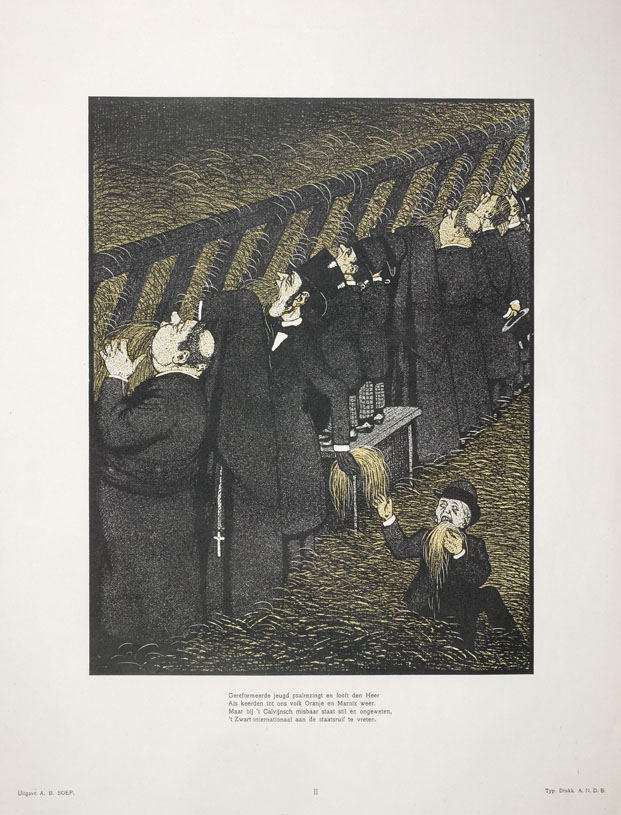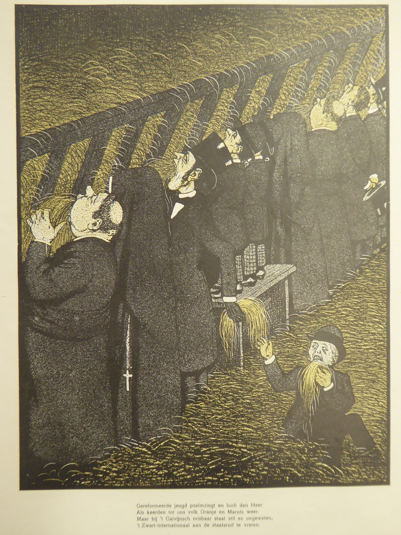'Onder zwart regime' karikatuur: Gereformeerde jeugd psalm zingt en looft den Heer ...