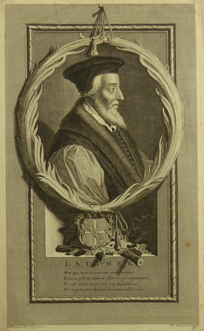 Portret van Latimer, met vierregelig Frans vers