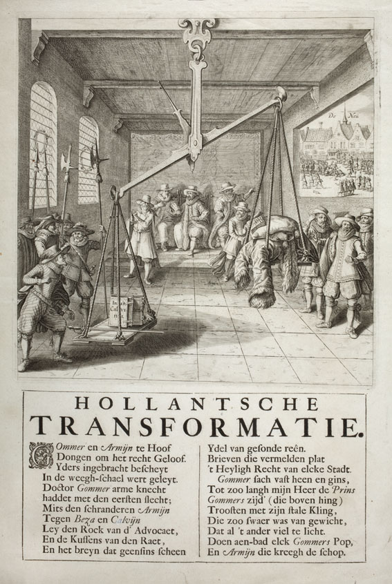 Hollantsche transformatie, met Gommer Armijn en Beza, spotprent op overwinning contra-remonstranten