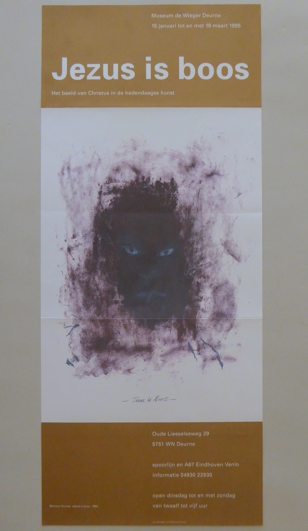 Affiche tentoonstelling Jezus is boos, Museum de Wieger Deurne, met afbeelding gelijknamig kunstwerk