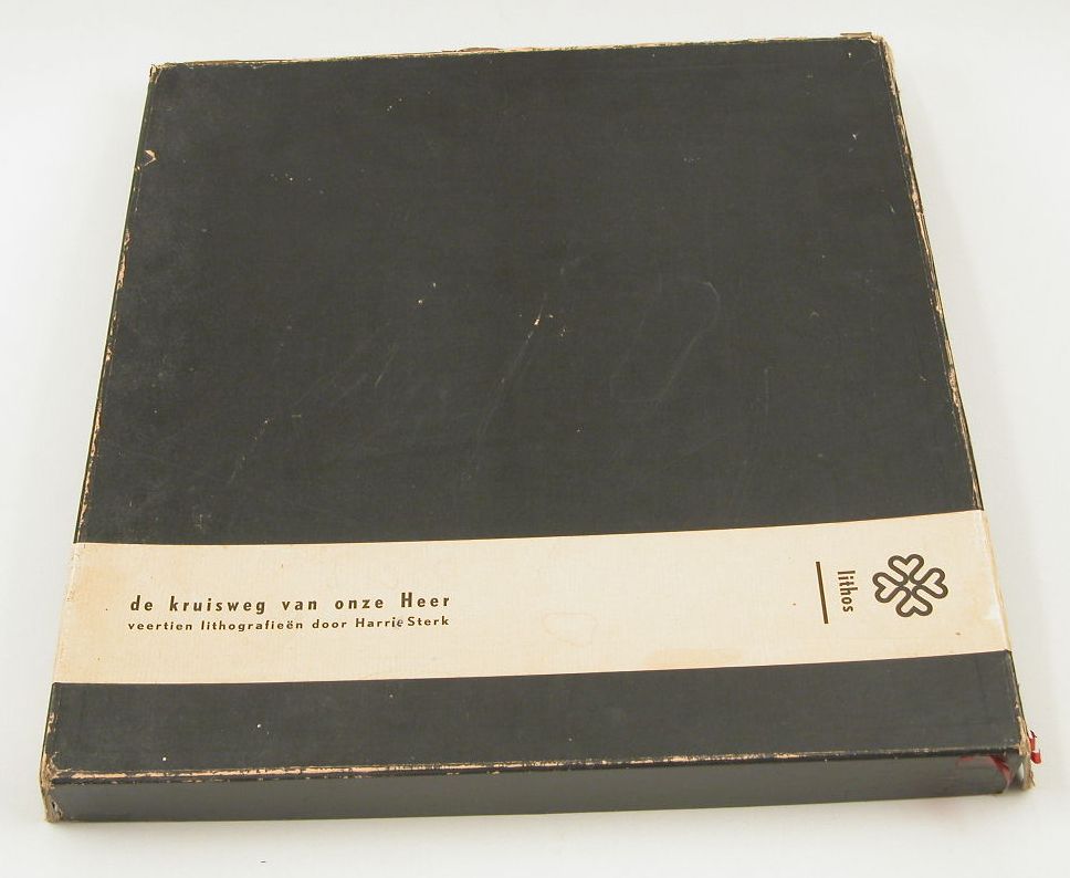 Zwarte doos voor StCC g372.1 t/m 14 met "de kruisweg van onze Heer, veertien lithografieën door Harrie Sterk"
