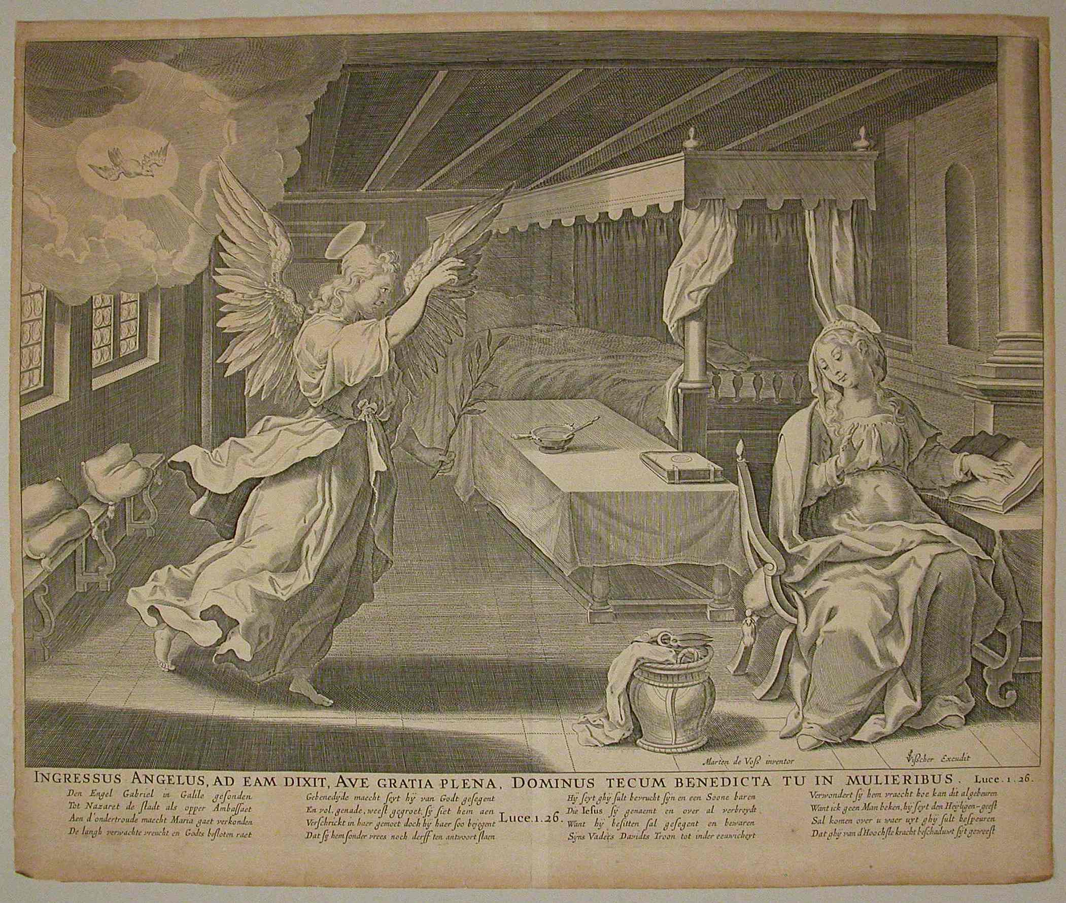 Annunciatie uit grote prentbijbel (royaalbijbel) van C.J. Visscher
