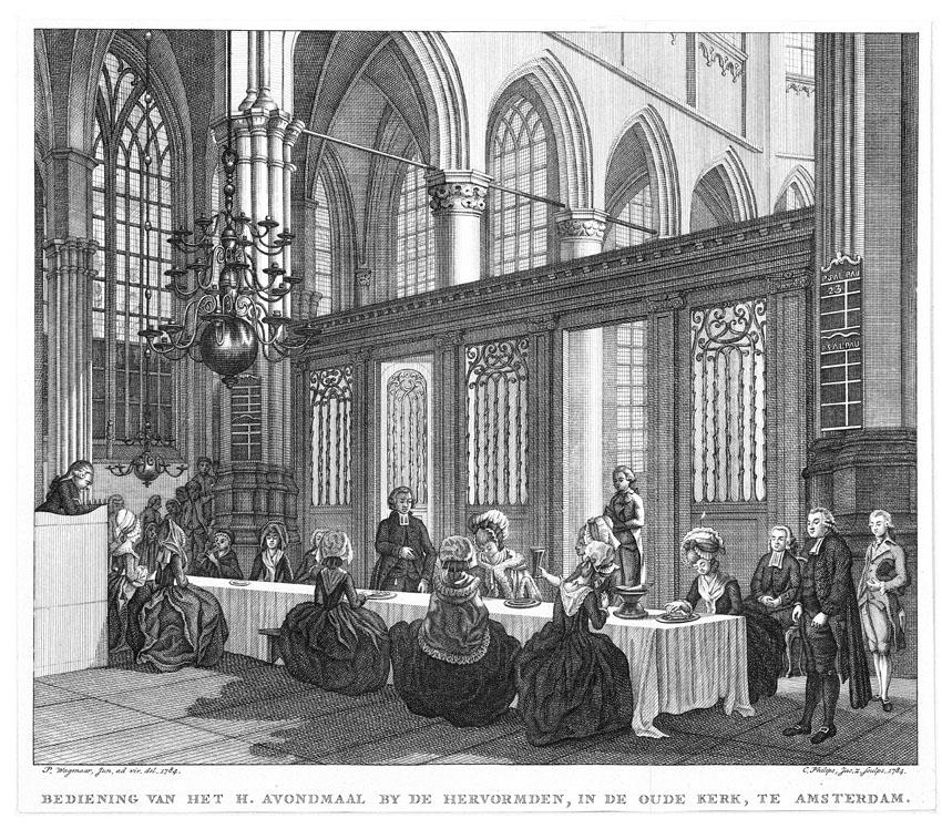 Amsterdam, bediening H. avondmaal bij de hervormden in de Oude kerk
