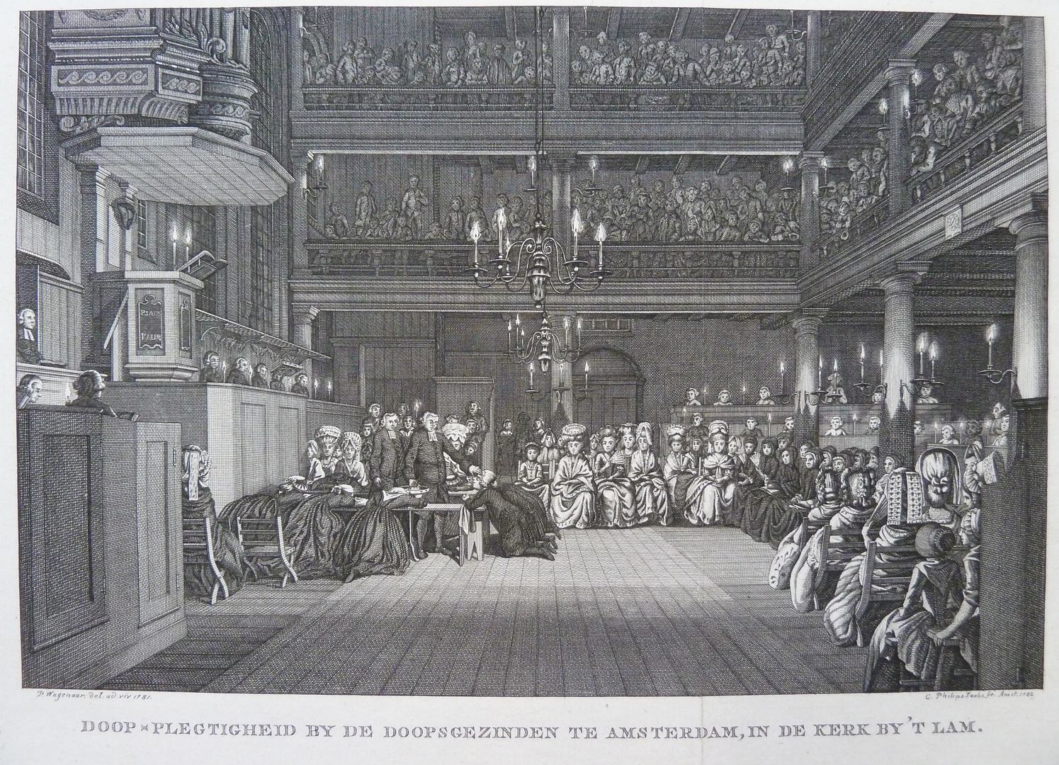 Amsterdam, doopplechtigheid bij de doopsgezinden in de kerk bij 't Lam