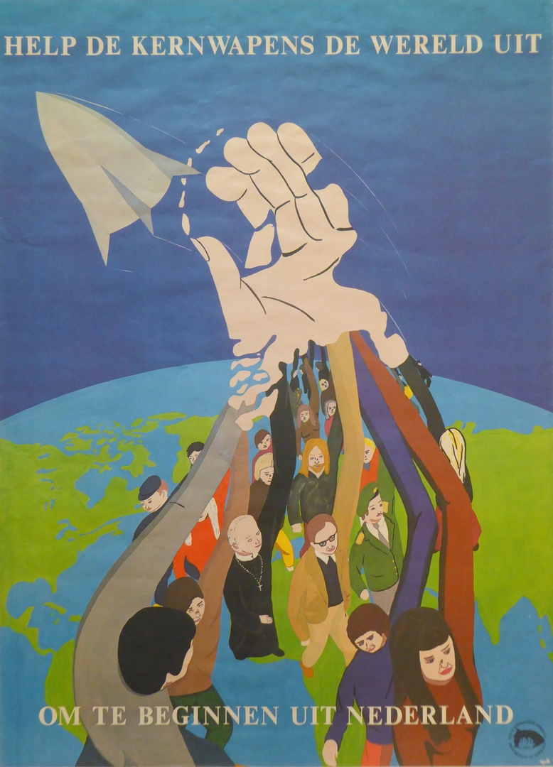 Affiche tegen kernwapens "Help de kernwapens de wereld uit om te beginnen uit Nederland"