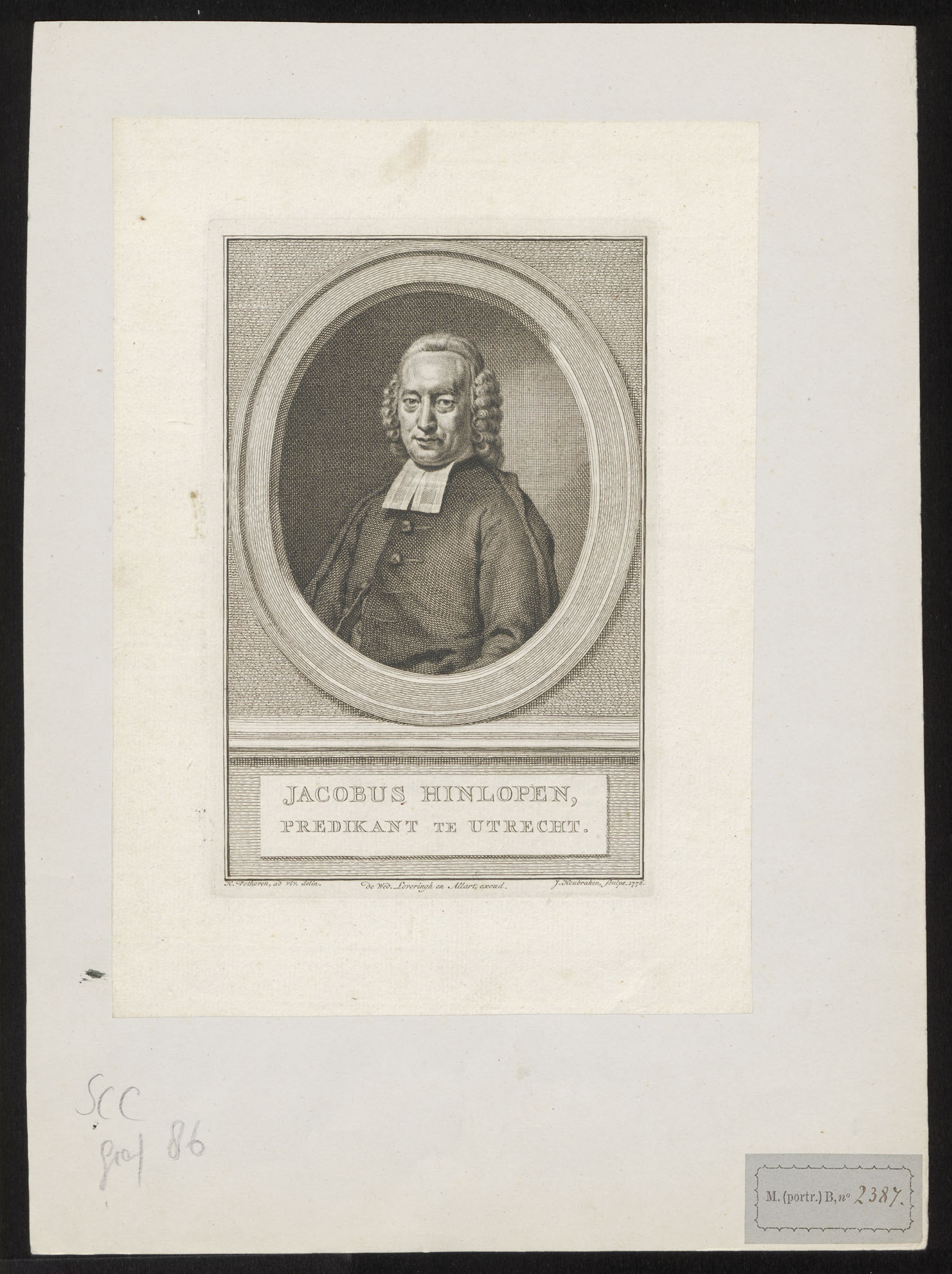 Portret van Jacobus Hinlopen (1723-1803), predikant te Utrecht