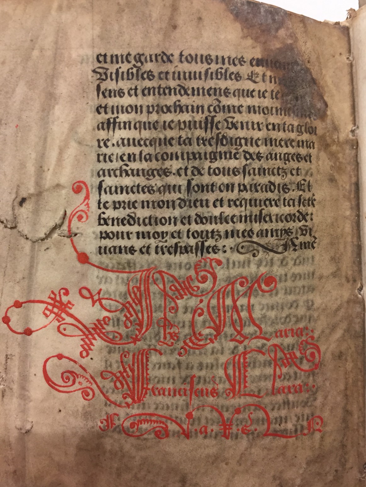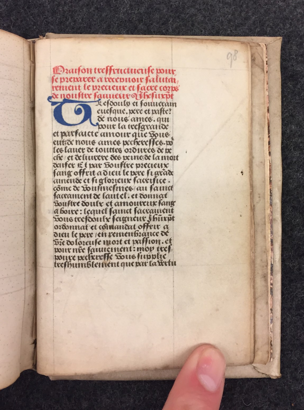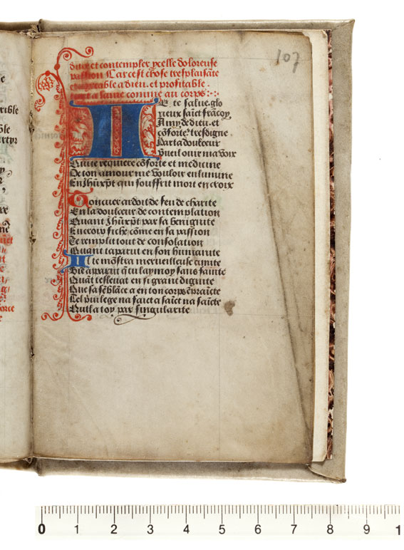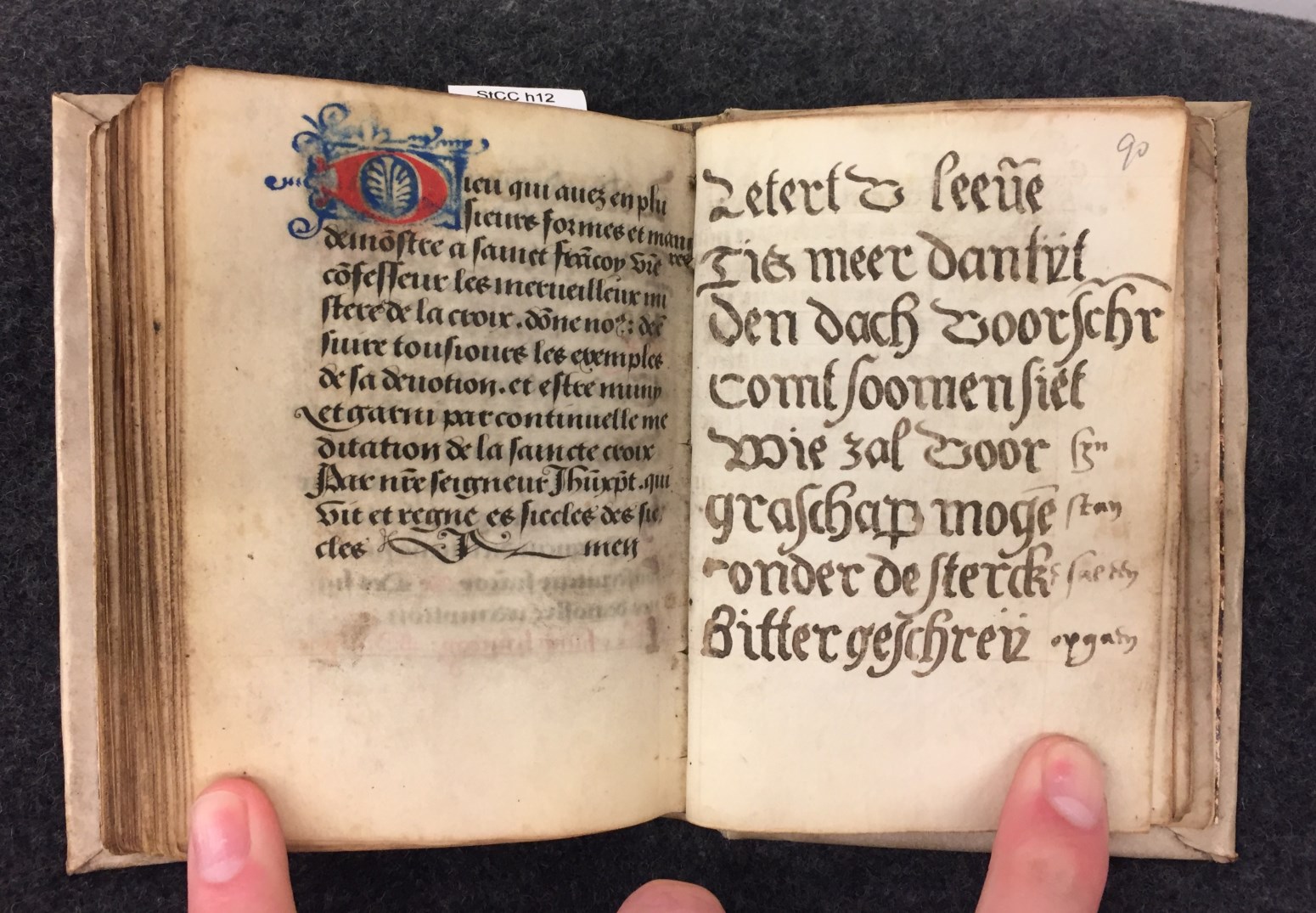 Een gebedenboek (gedeeltelijk in het Frans) uit de Zuidelijke-Nederlanden dat gemaakt is rond 1500. Het handschrift (op perkament) telt in totaal 110 folia (in twee delen: f. 1-97 en f. 98-110), heeft een kalender en enkele penwerkinitialen. Het werk is afgeschreven door broeder Nicolaus Mas.