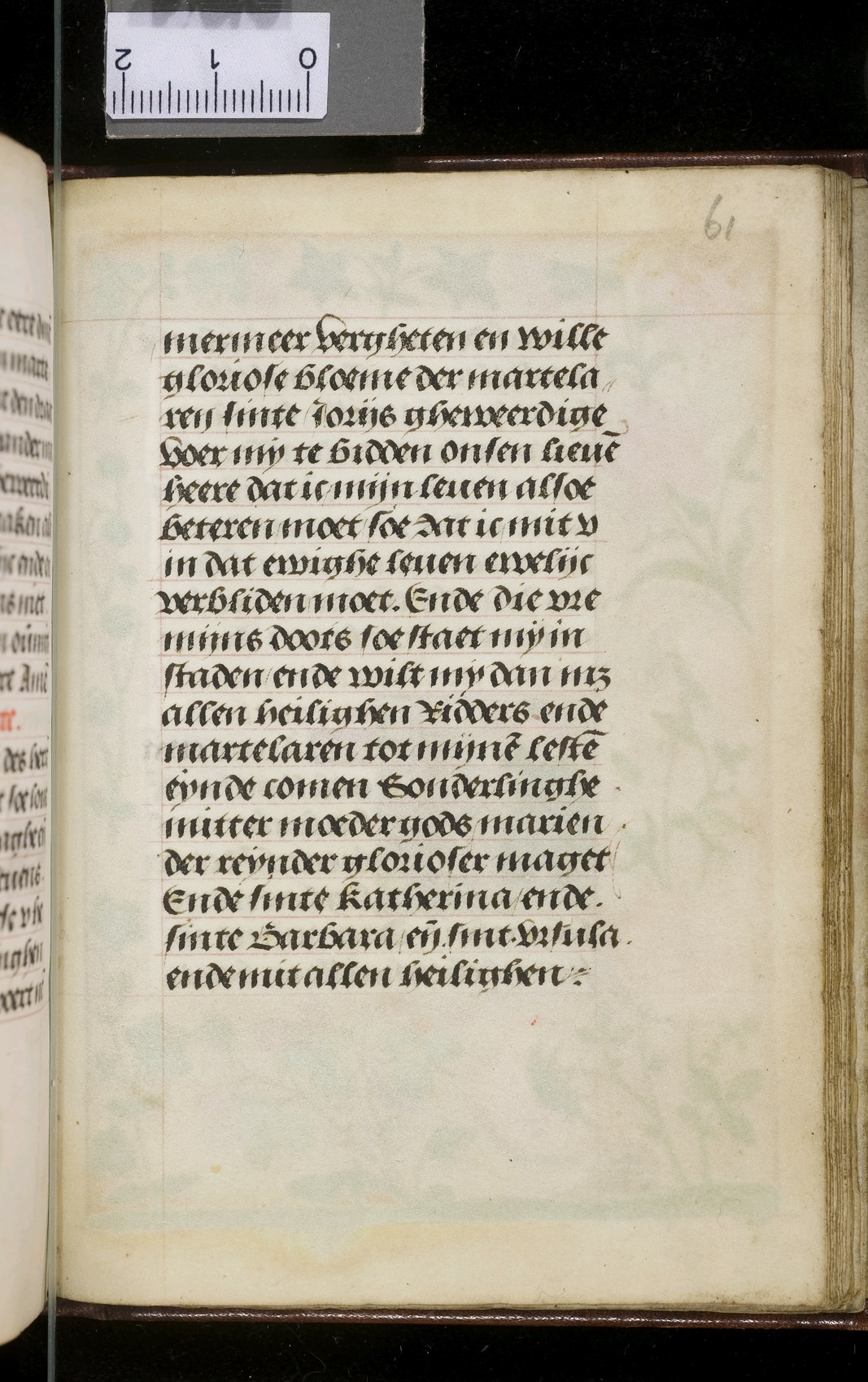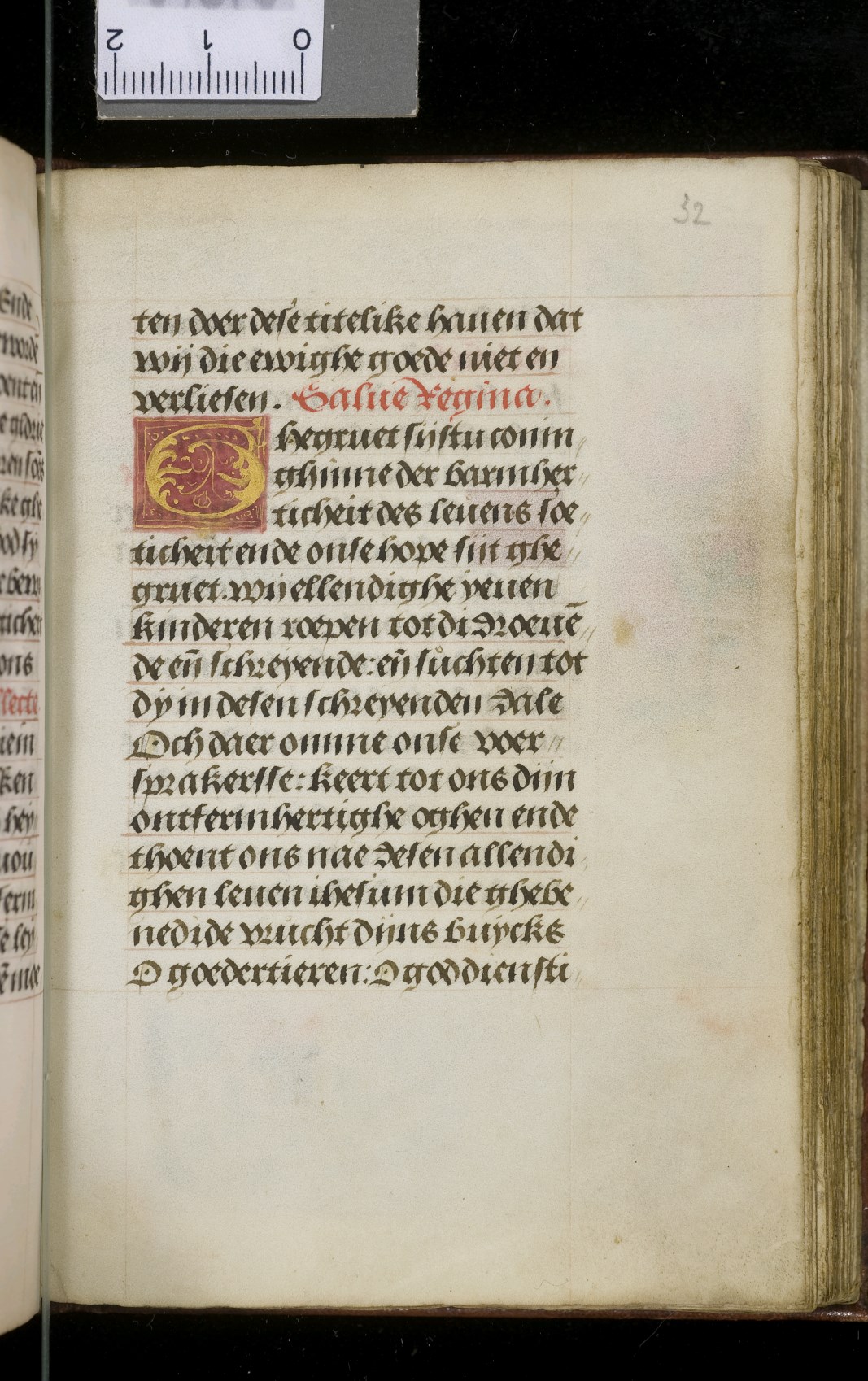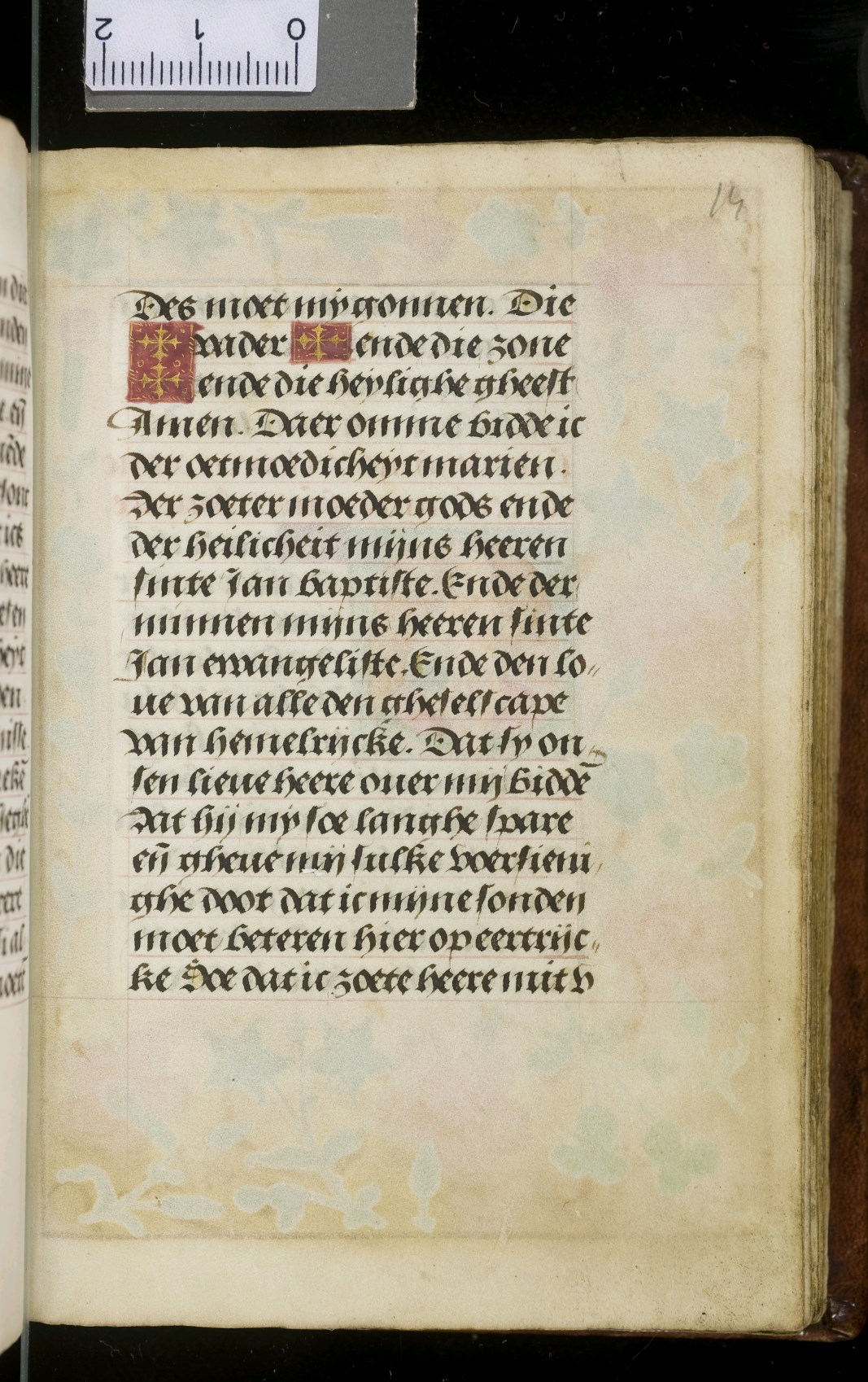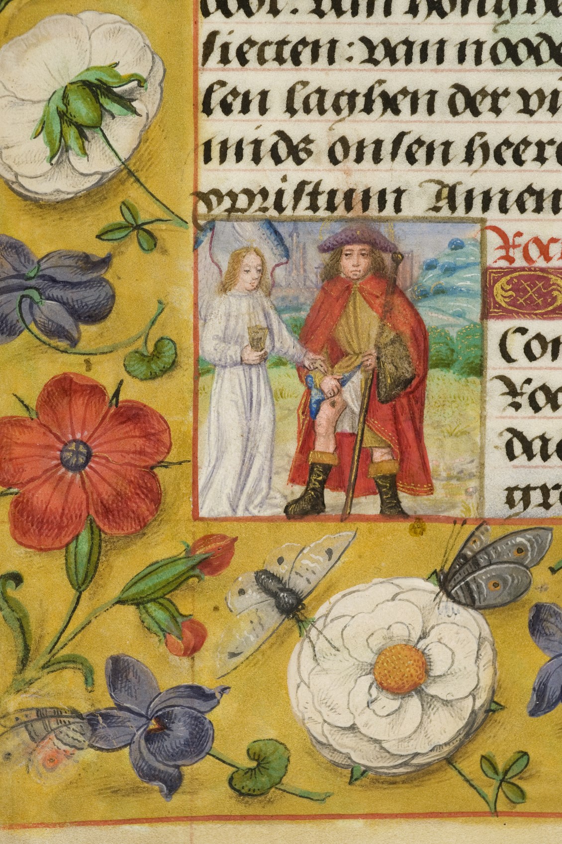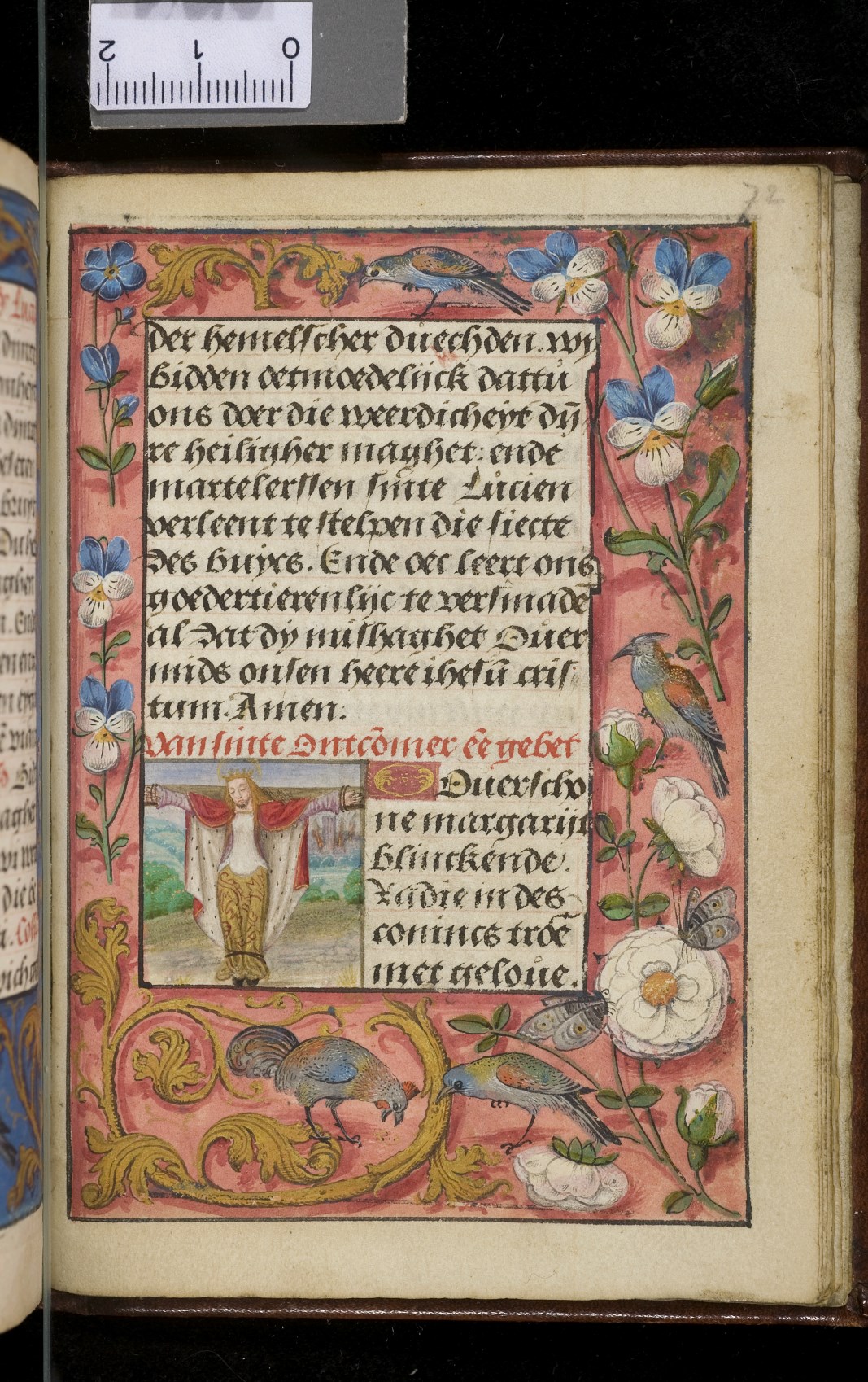 Een gebedenboekje uit Vlaanderen dat gemaakt is in 1498. Op f. 20v vinden we een miniatuur met Maria Moeder Gods met Christus Kind en de opdrachtgevers. Verder staan er 32 kleine miniaturen van heiligen, voorafgaand aan een gebed gewijd aan de desbetreffende heilige (f. 14v Christus Kind als Salvator Mundi, f. 33r Maria Moeder Gods ...