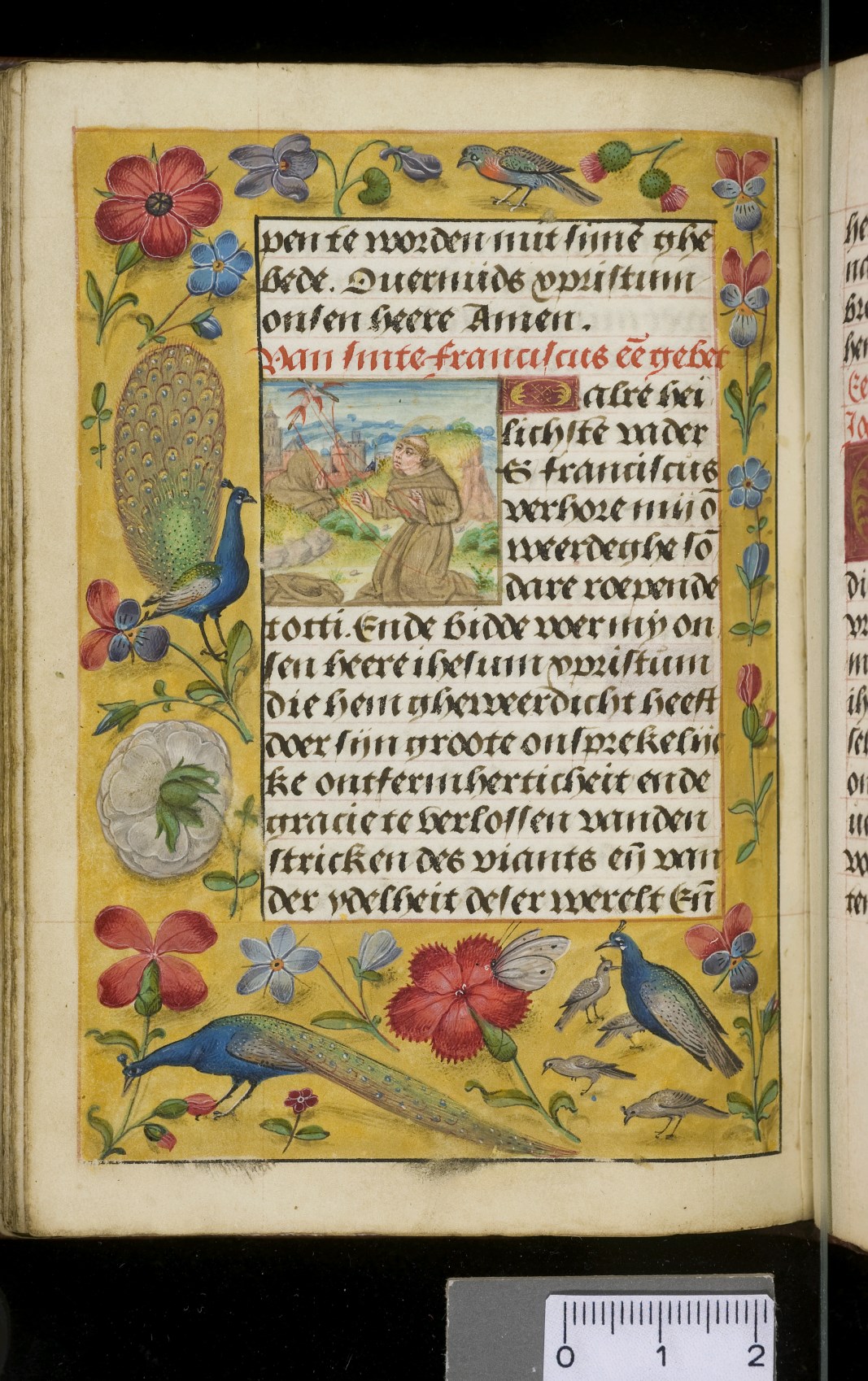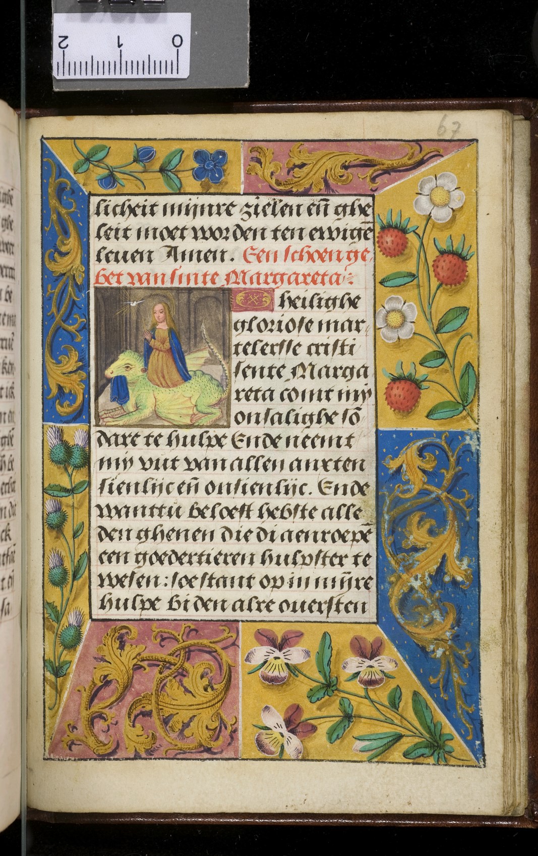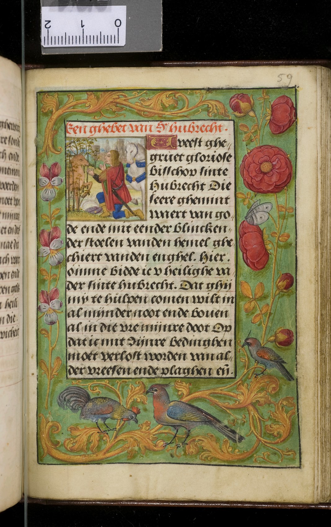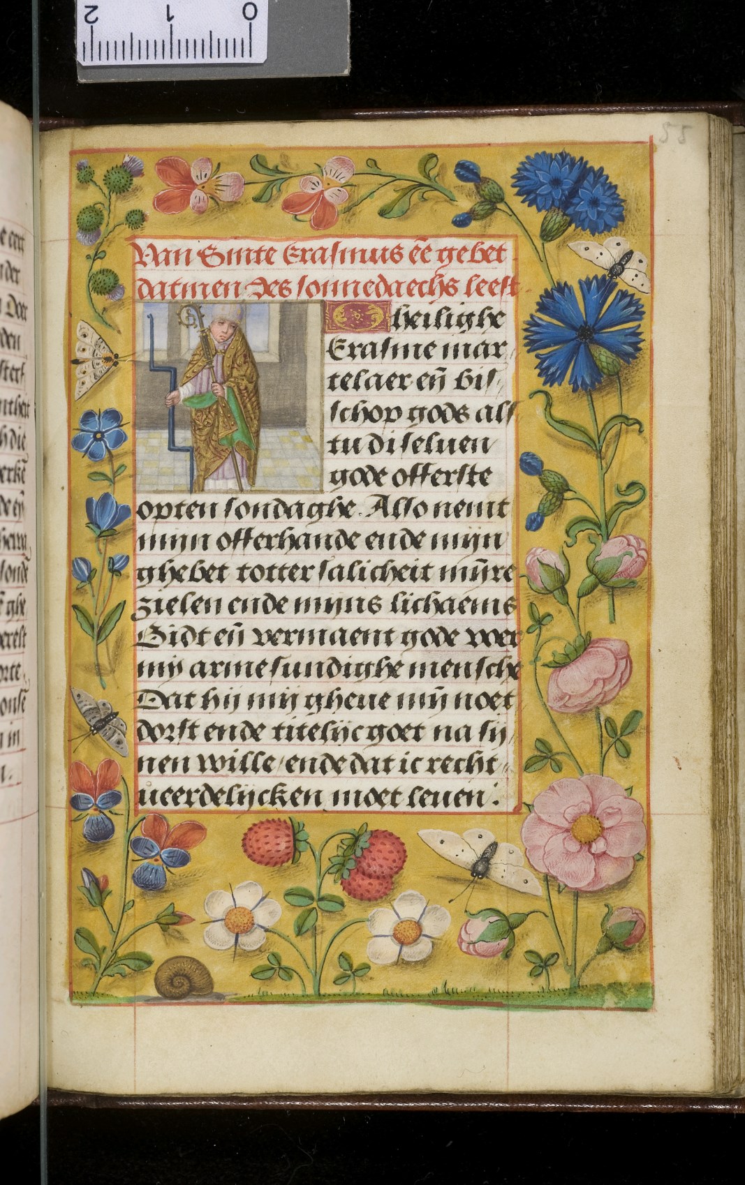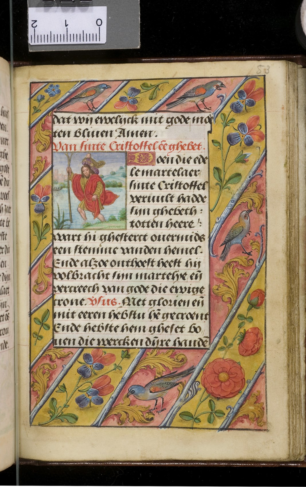 Een gebedenboekje uit Vlaanderen dat gemaakt is in 1498. Op f. 20v vinden we een miniatuur met Maria Moeder Gods met Christus Kind en de opdrachtgevers. Verder staan er 32 kleine miniaturen van heiligen, voorafgaand aan een gebed gewijd aan de desbetreffende heilige (f. 14v Christus Kind als Salvator Mundi, f. 33r Maria Moeder Gods ...