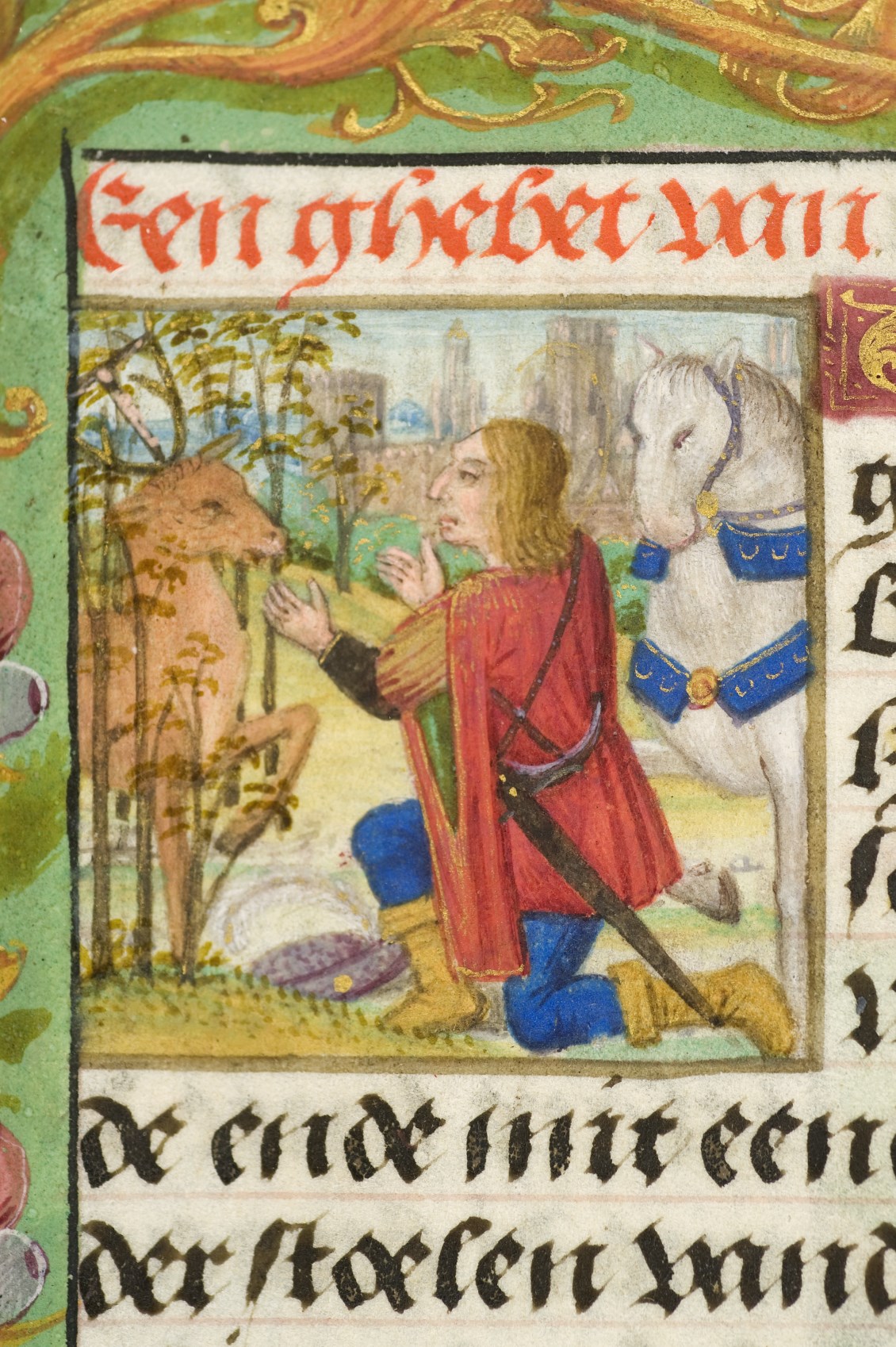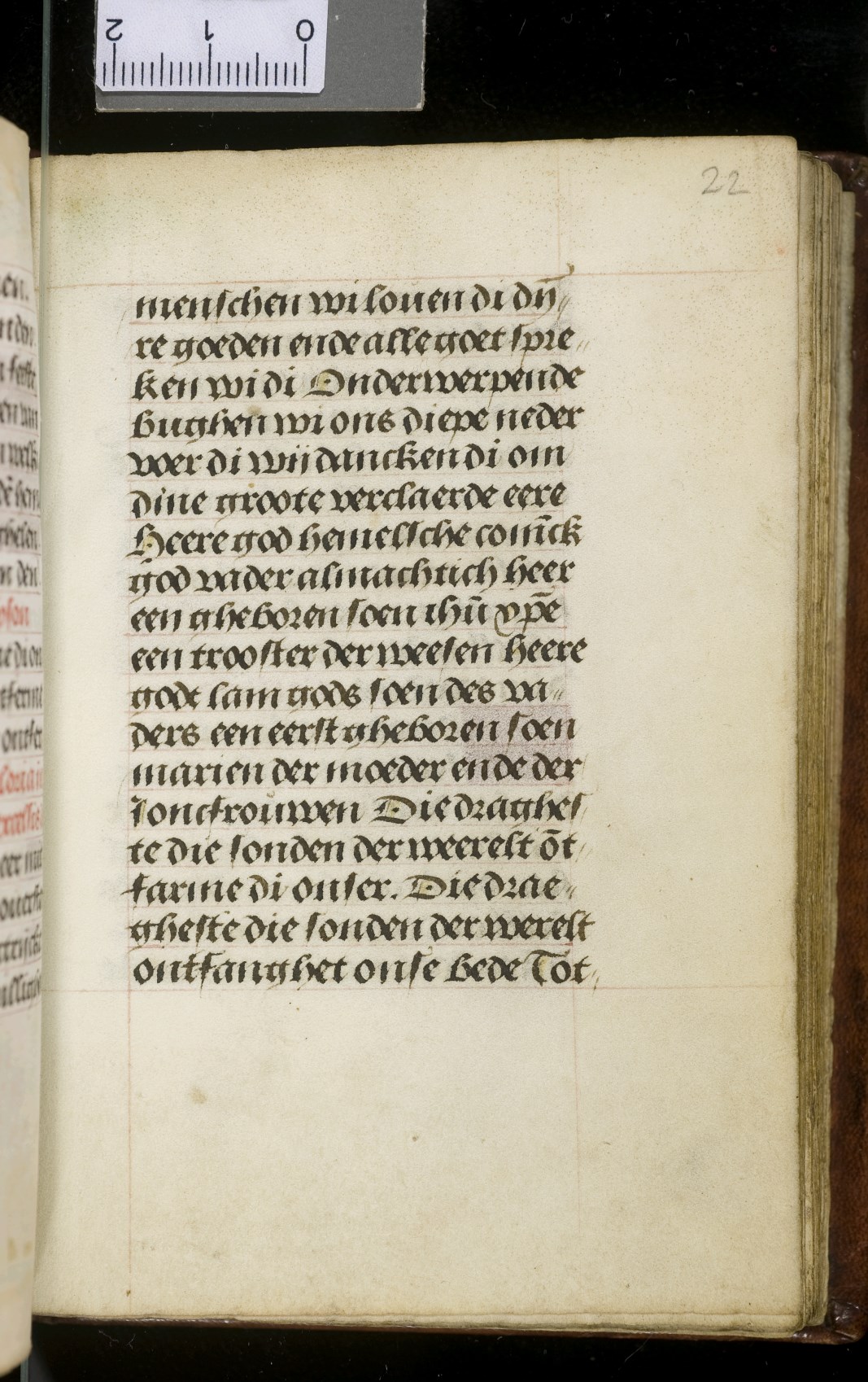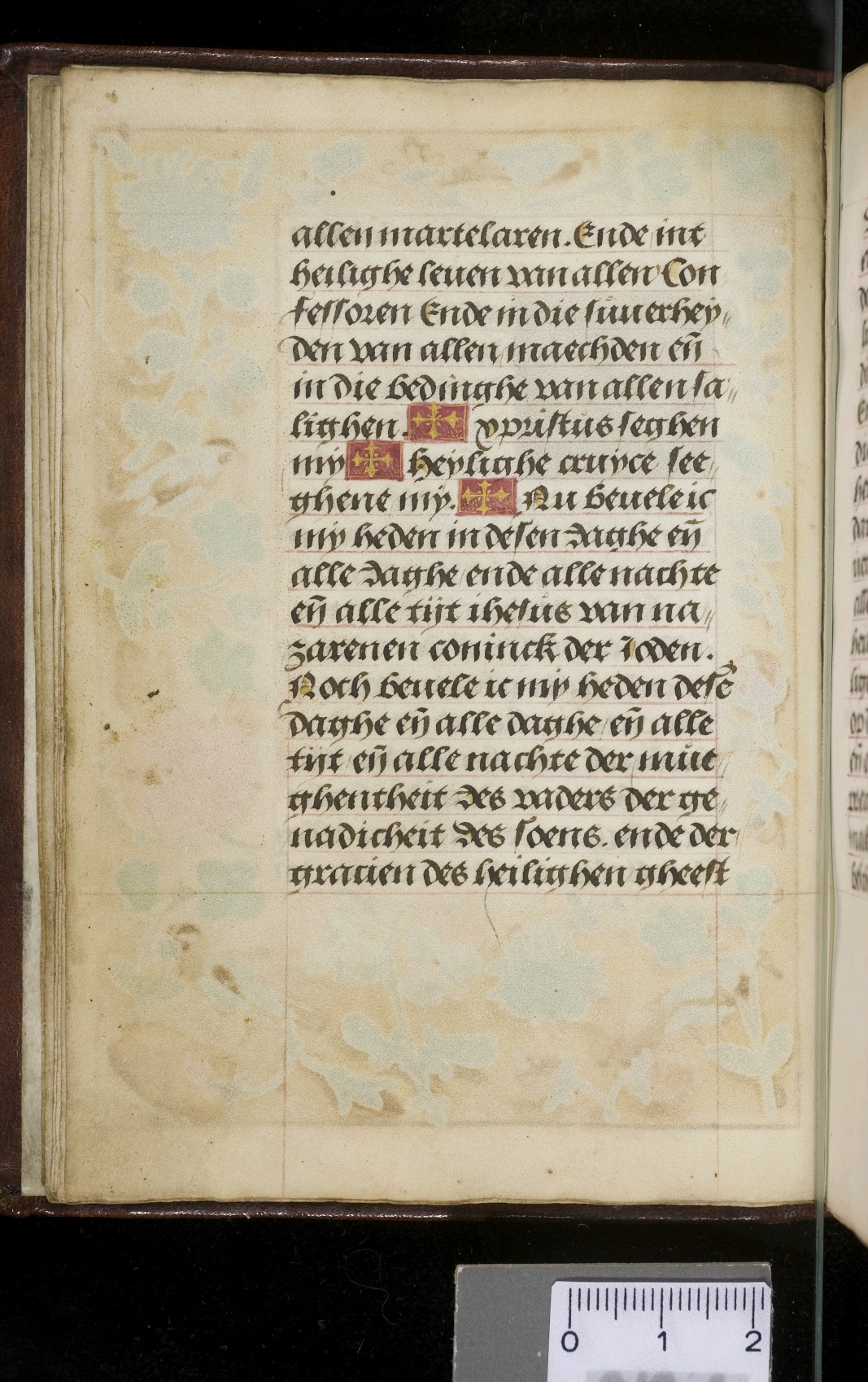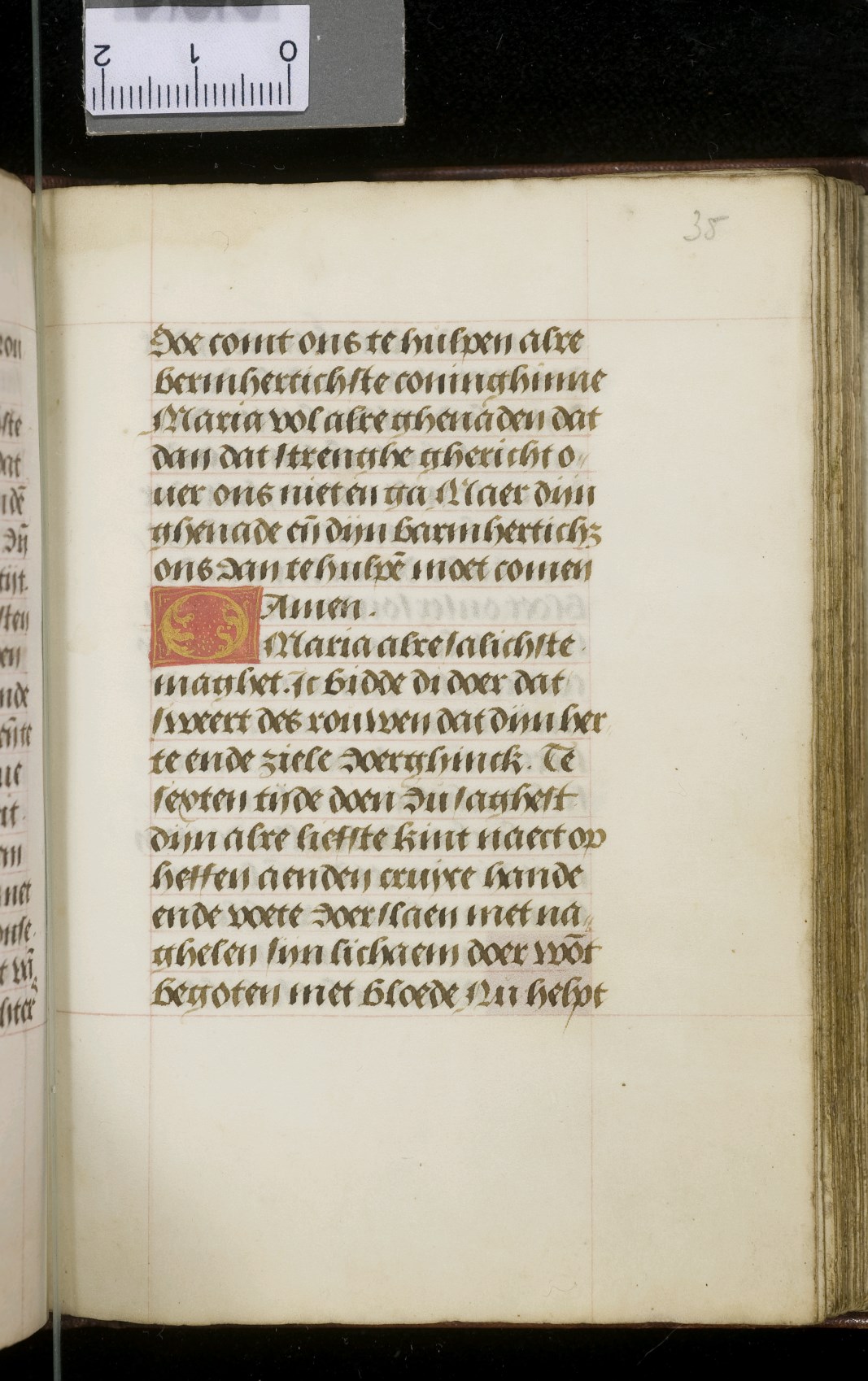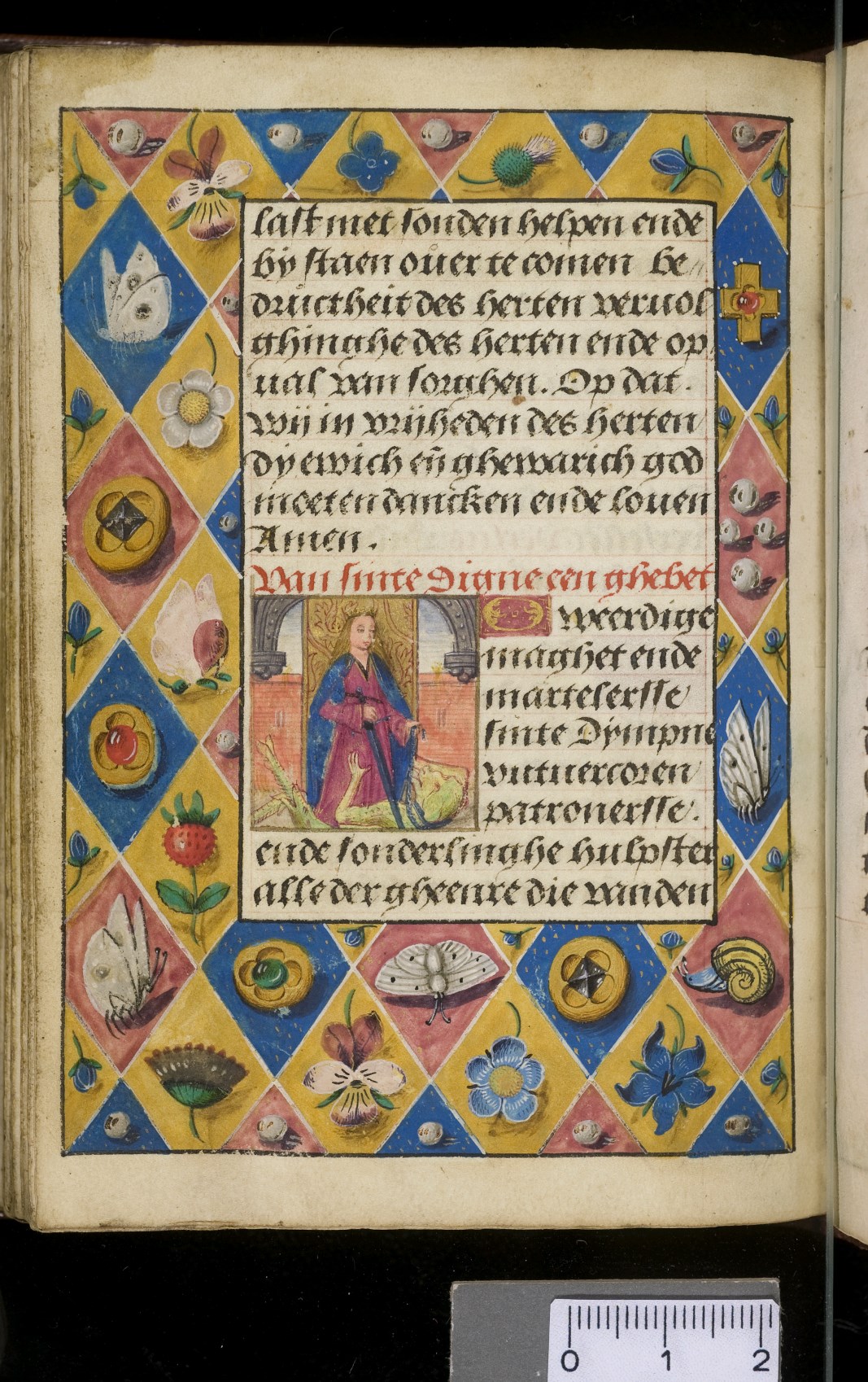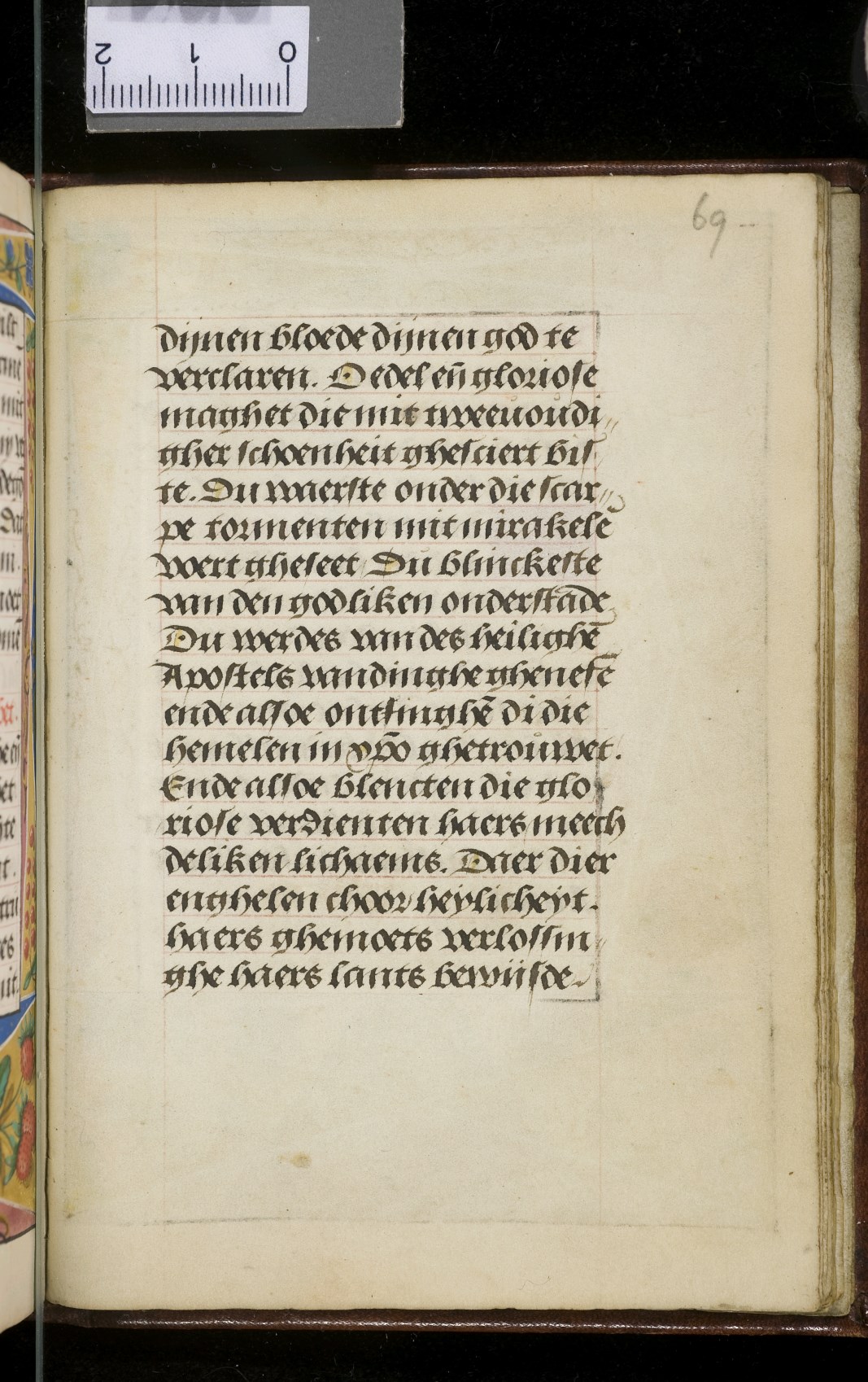 Een gebedenboekje uit Vlaanderen dat gemaakt is in 1498. Op f. 20v vinden we een miniatuur met Maria Moeder Gods met Christus Kind en de opdrachtgevers. Verder staan er 32 kleine miniaturen van heiligen, voorafgaand aan een gebed gewijd aan de desbetreffende heilige (f. 14v Christus Kind als Salvator Mundi, f. 33r Maria Moeder Gods ...