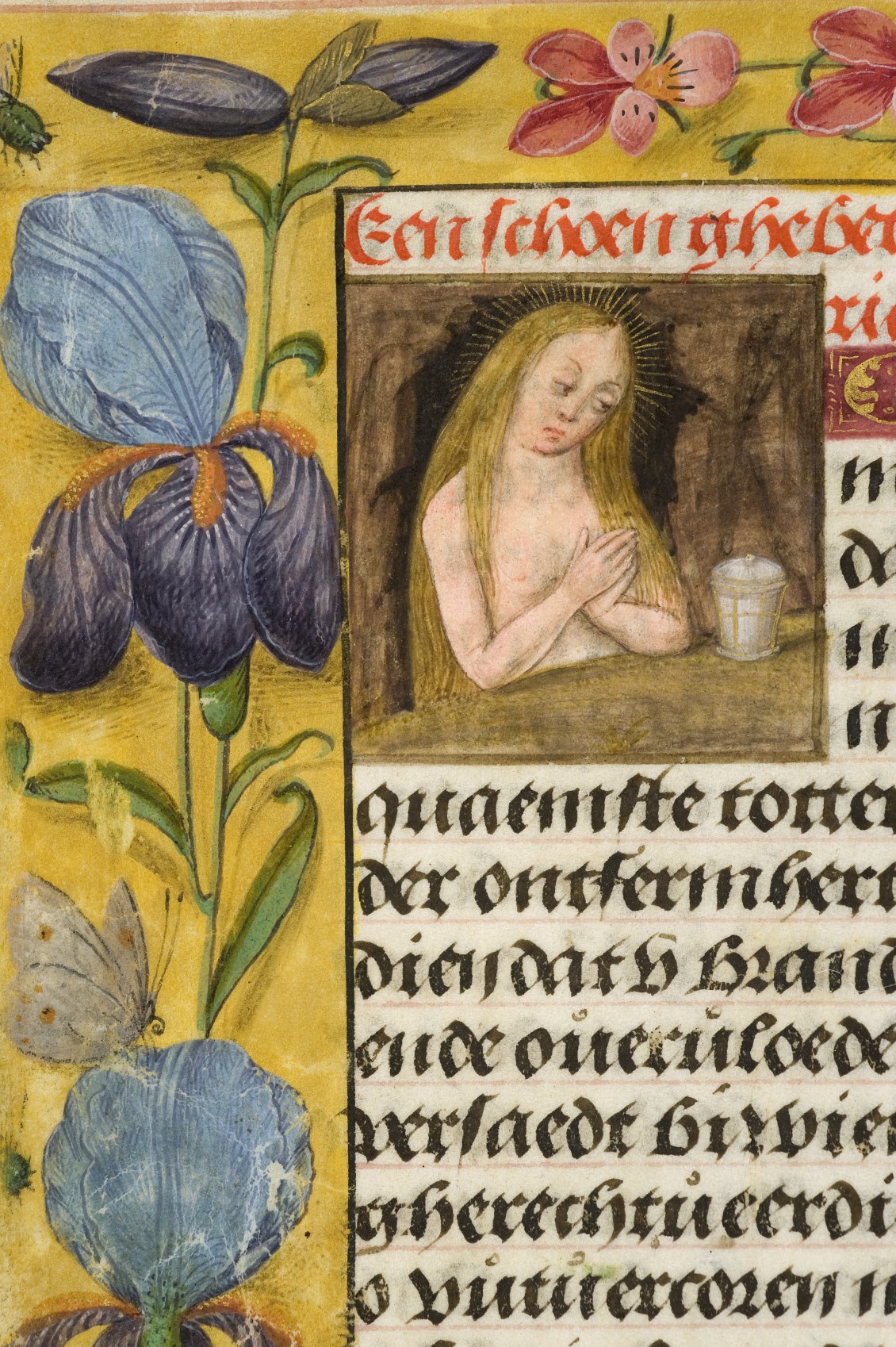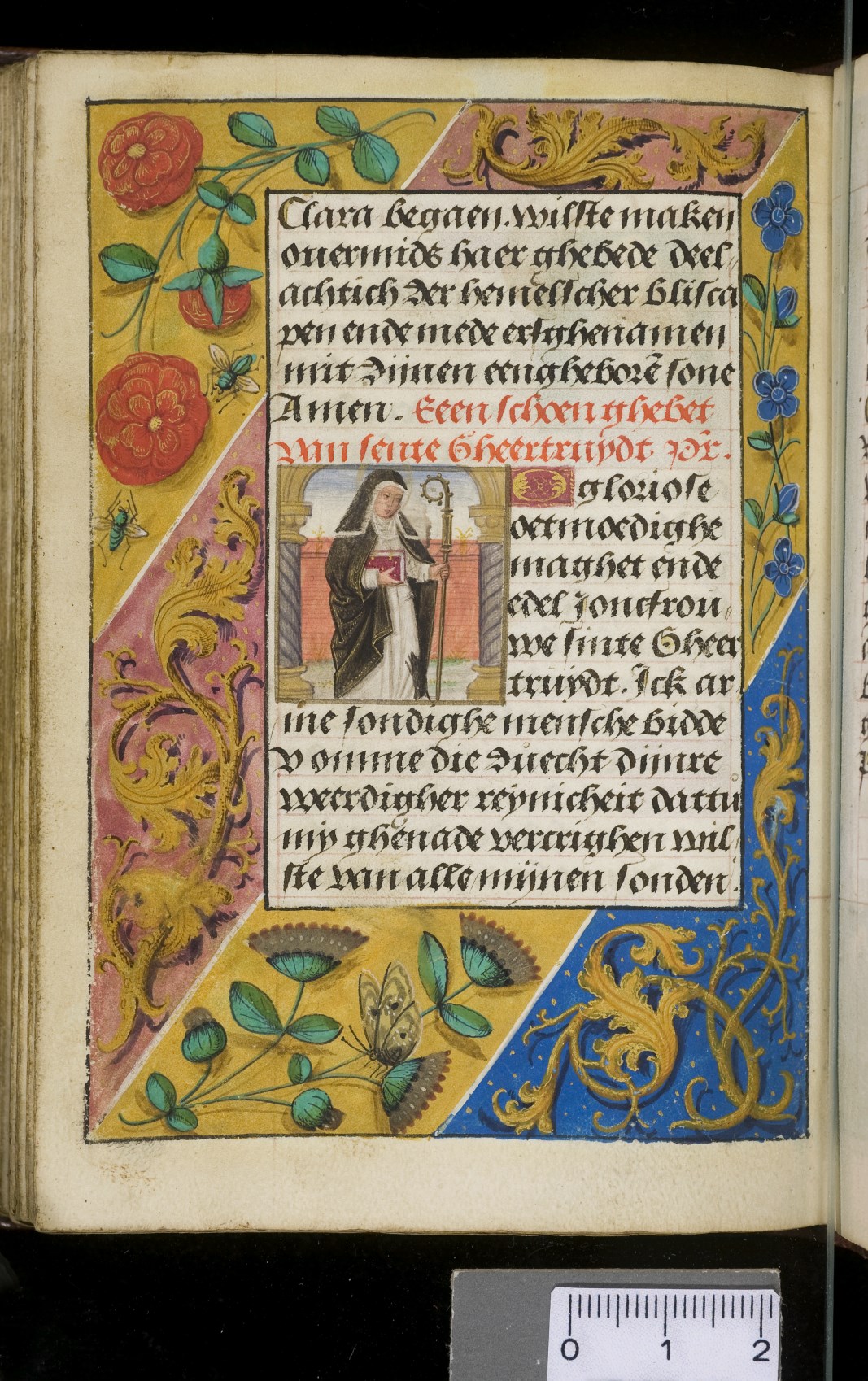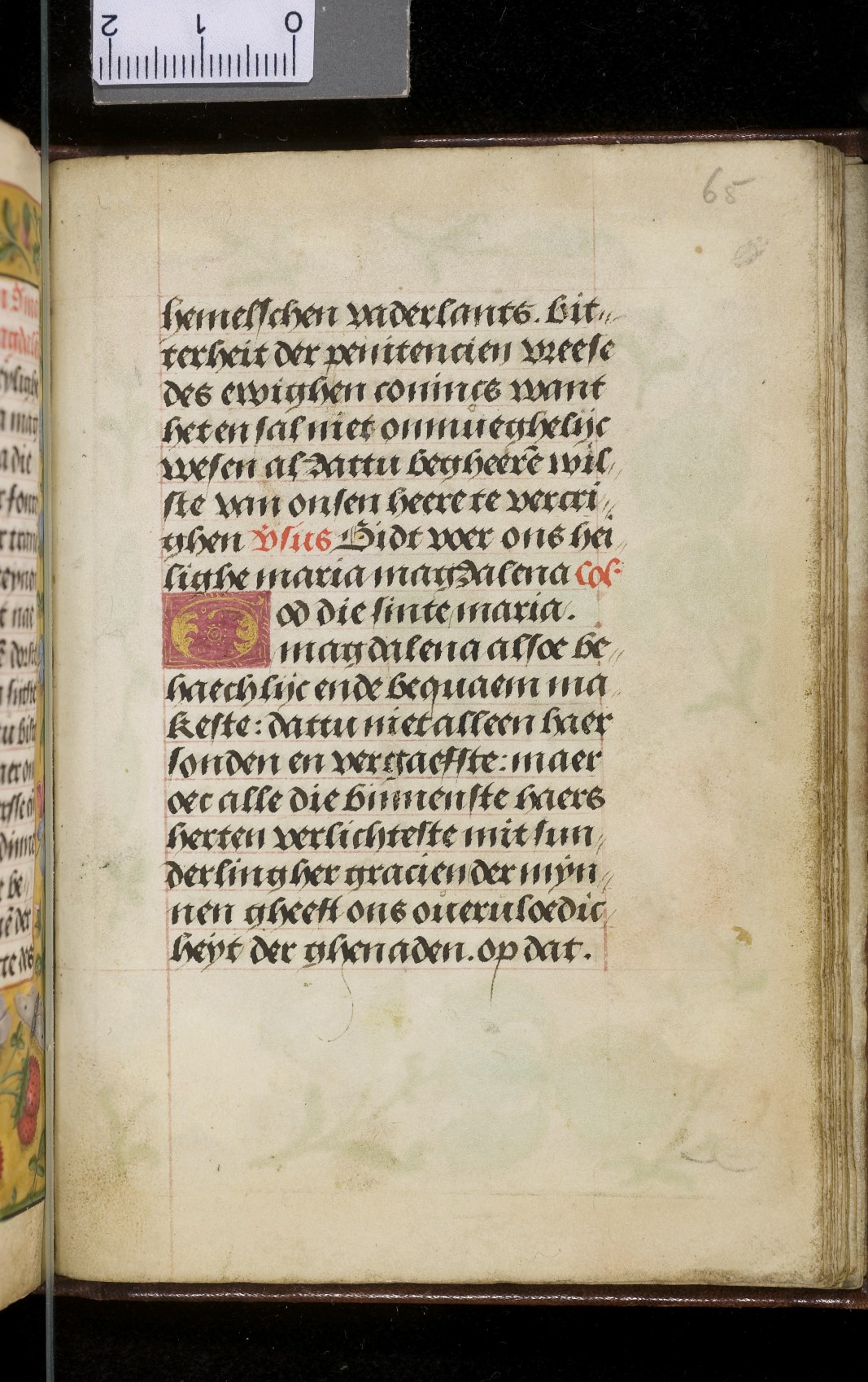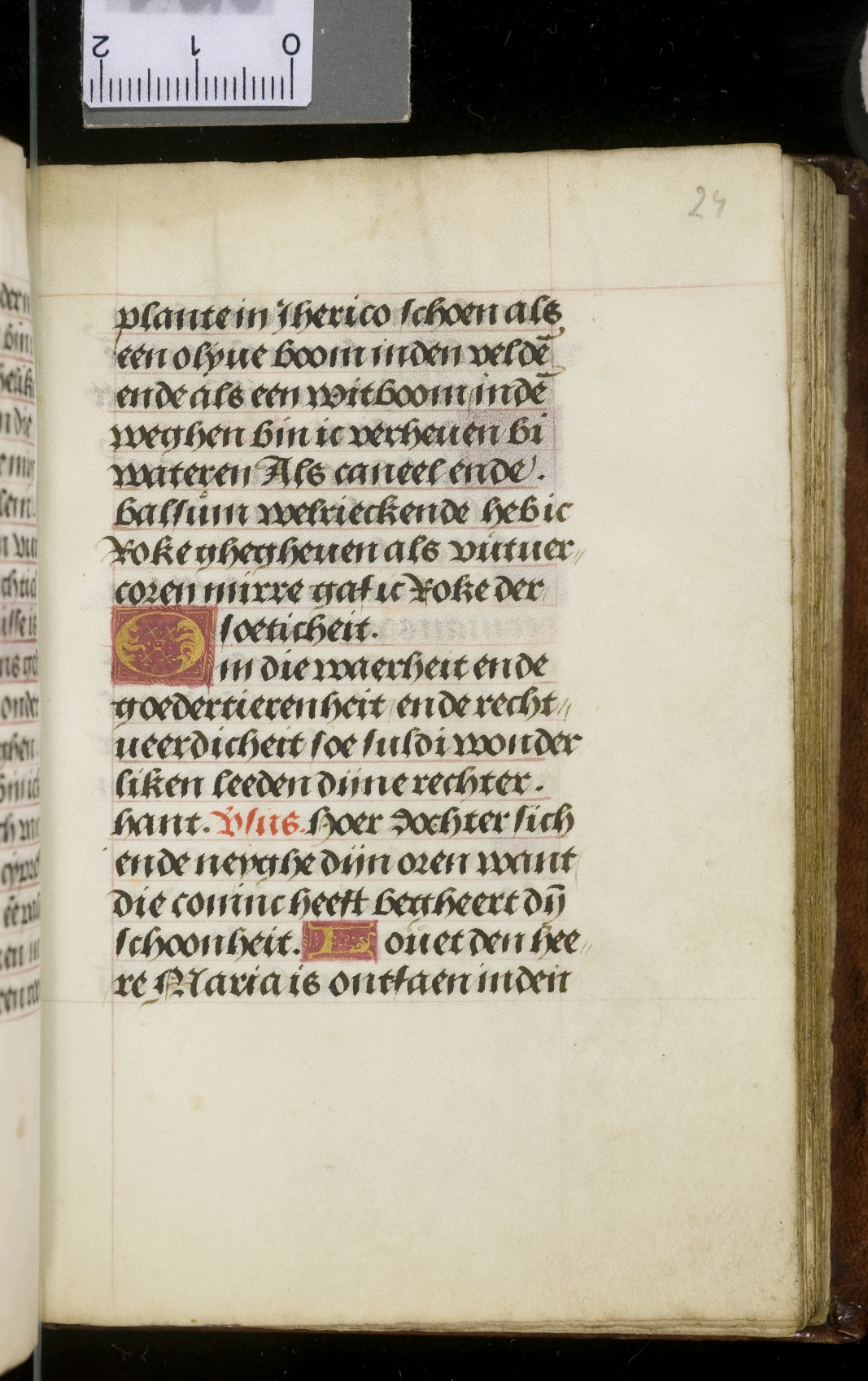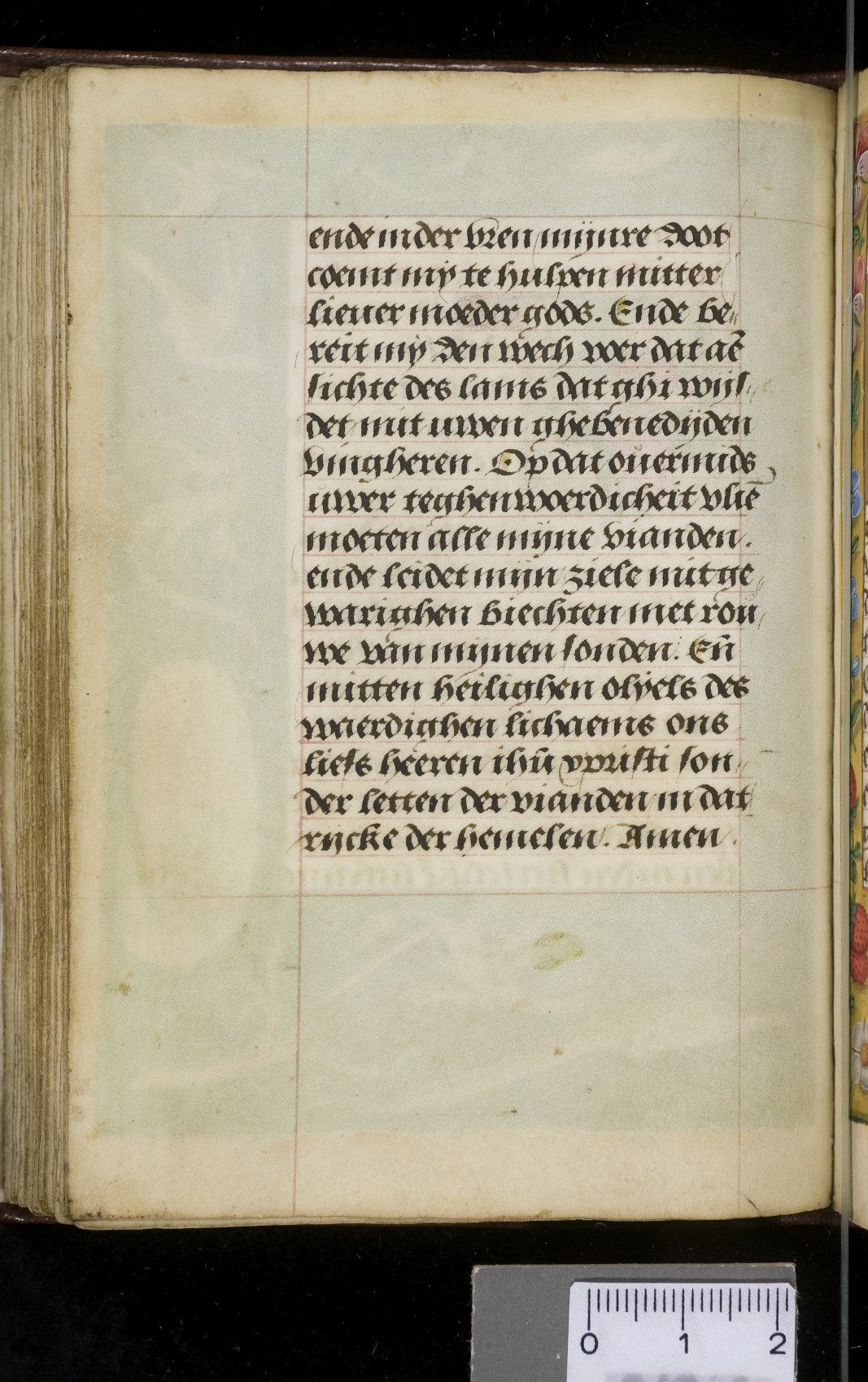Een gebedenboekje uit Vlaanderen dat gemaakt is in 1498. Op f. 20v vinden we een miniatuur met Maria Moeder Gods met Christus Kind en de opdrachtgevers. Verder staan er 32 kleine miniaturen van heiligen, voorafgaand aan een gebed gewijd aan de desbetreffende heilige (f. 14v Christus Kind als Salvator Mundi, f. 33r Maria Moeder Gods ...