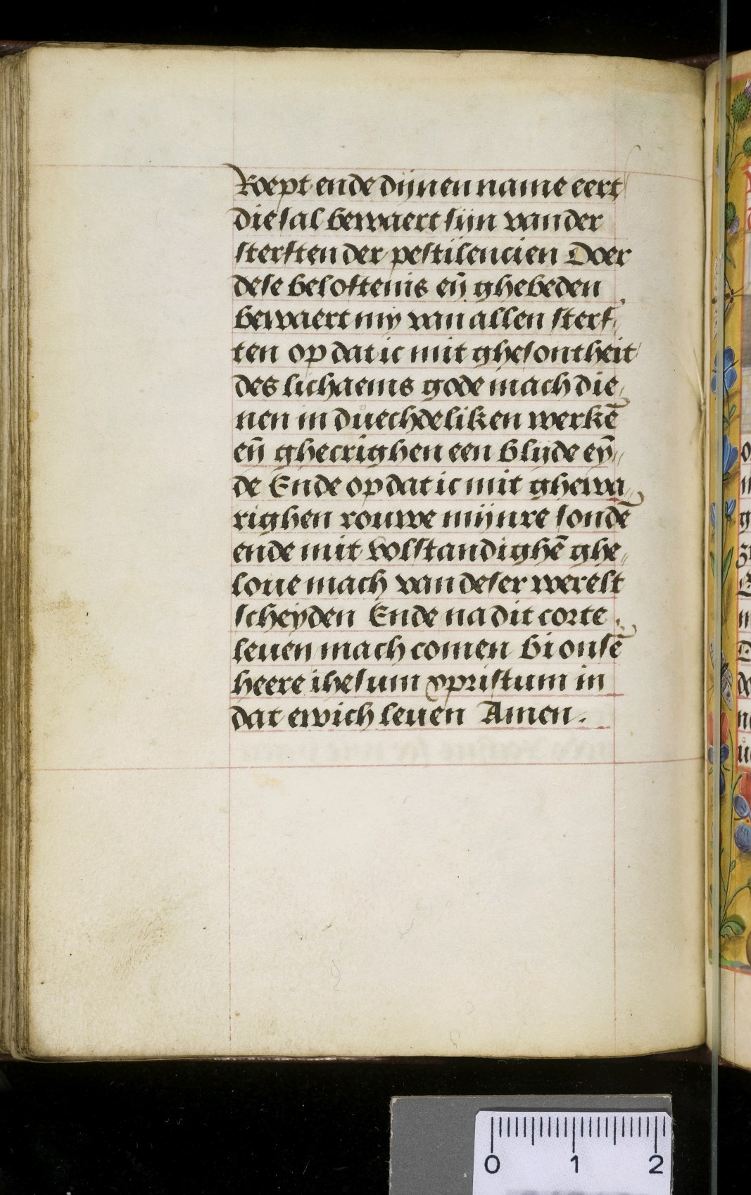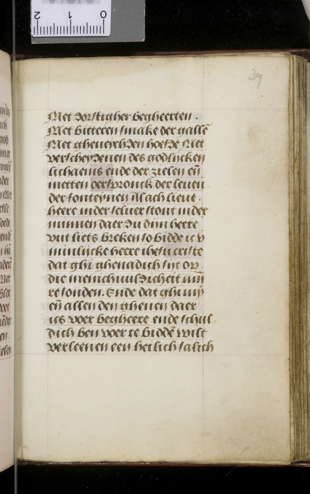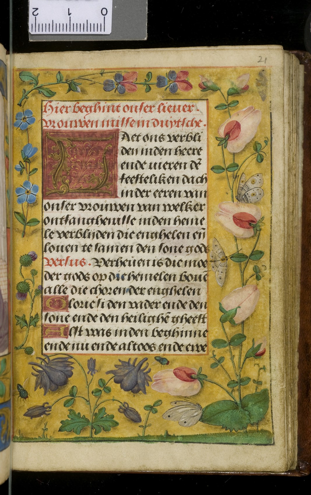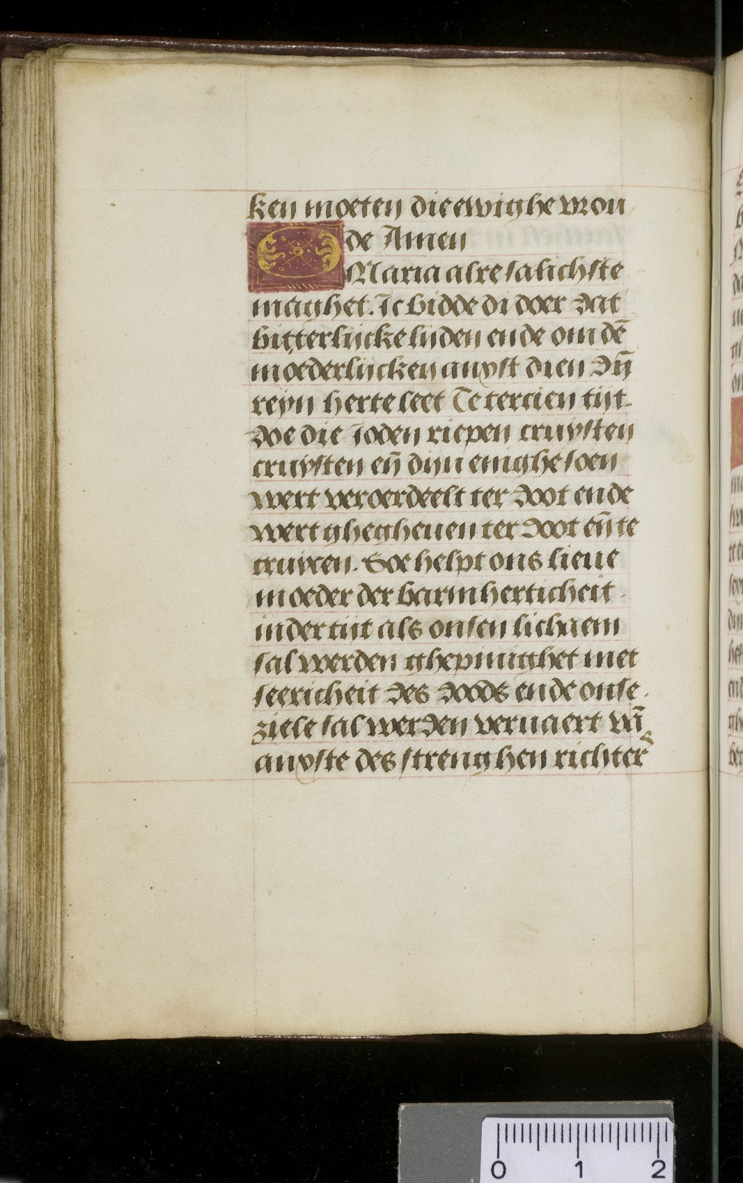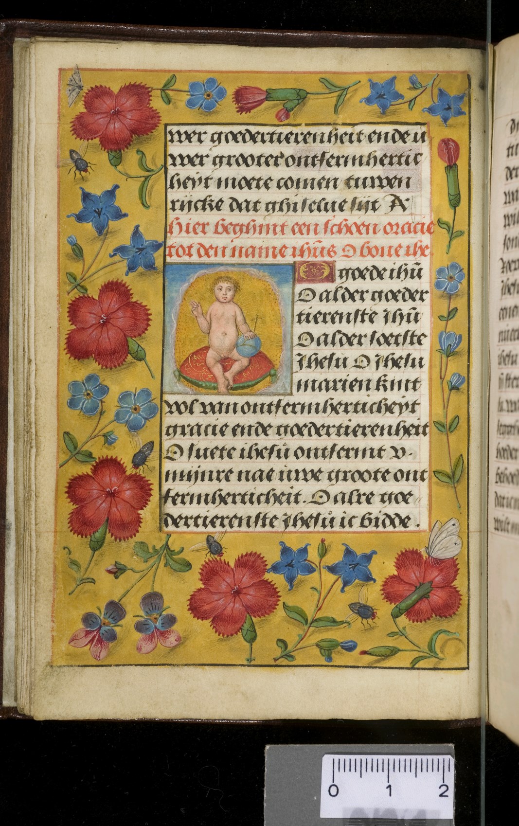 Een gebedenboekje uit Vlaanderen dat gemaakt is in 1498. Op f. 20v vinden we een miniatuur met Maria Moeder Gods met Christus Kind en de opdrachtgevers. Verder staan er 32 kleine miniaturen van heiligen, voorafgaand aan een gebed gewijd aan de desbetreffende heilige (f. 14v Christus Kind als Salvator Mundi, f. 33r Maria Moeder Gods ...