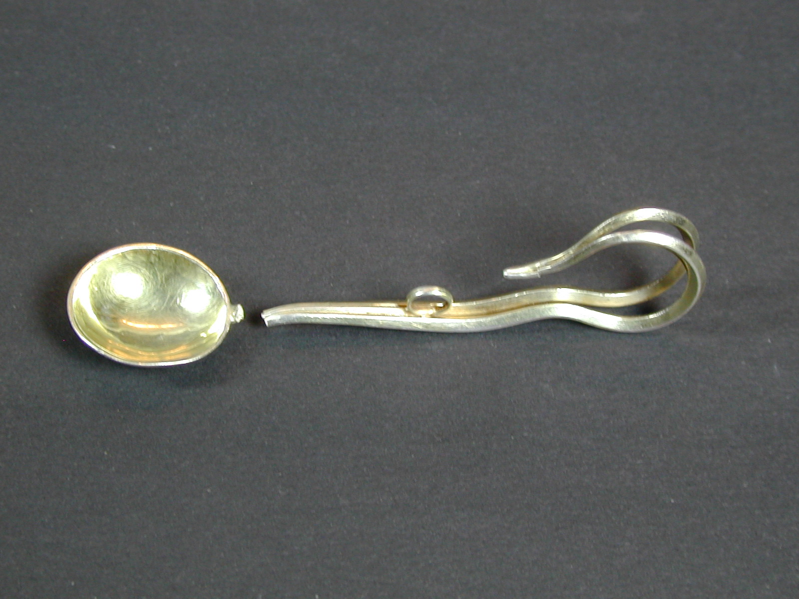 Kelklepel met steel bestaande uit twee draden uitlopend in krul