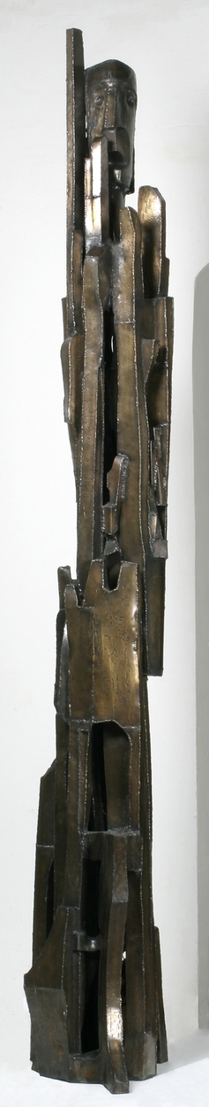 De sculptuur verbeeldt Gen. 19,26: 'Maar de vrouw van Loth keek om en werd een zoutpilaar'. Techniek: De sculptuur is vervaardigd van aaneengesoldeerde messing platen, op een ijzeren frame. De sculptuur bestaat uit twee delen van 130 cm.