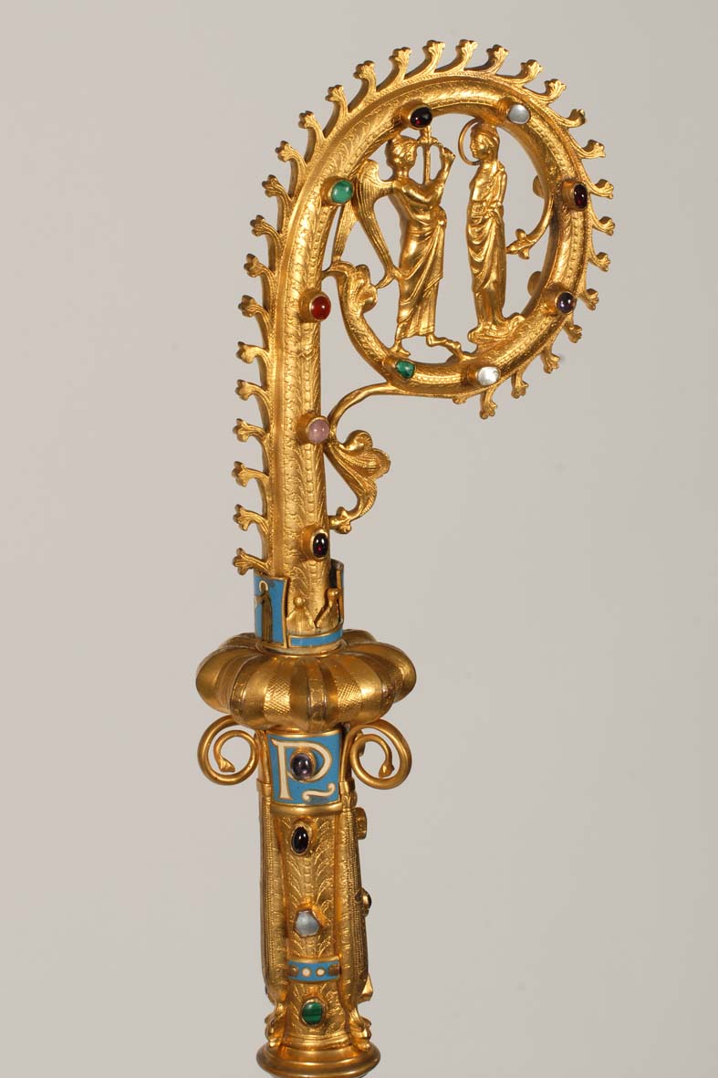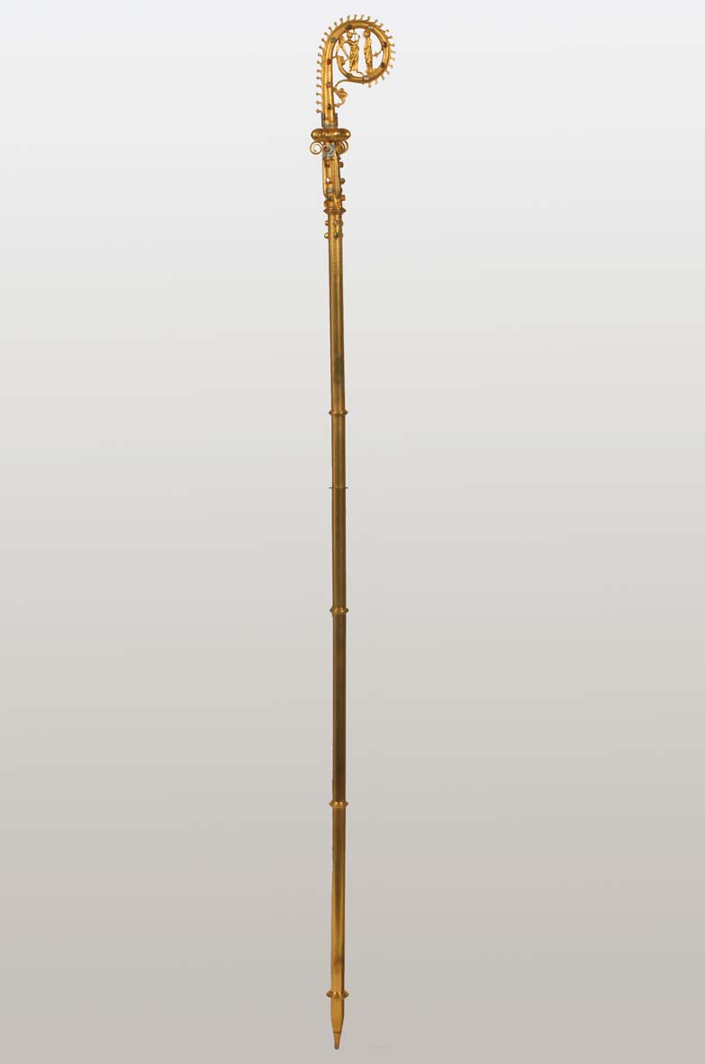 De staf bestaat uit vijf uitschroefbare delen. Het onderste segment loopt taps toe. De staf is een kopie van een twaalfde-eeuwse staf uit Frankrijk. In de krul de voorstelling van Maria Boodschap. Maria heeft een aan de kopie toegevoegd aureool. De krul is aan de bovenzijde gedecoreerd met driebladige hogels. Aan de voet van de ...