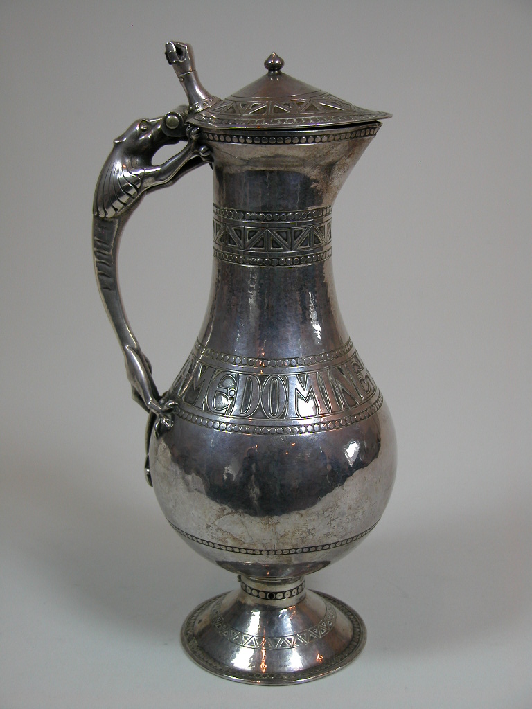 Schenkkan met als handvat de leeuw uit wapen abt Jean de Puniet de Parry en als duimrust de arm uit zijn wapen