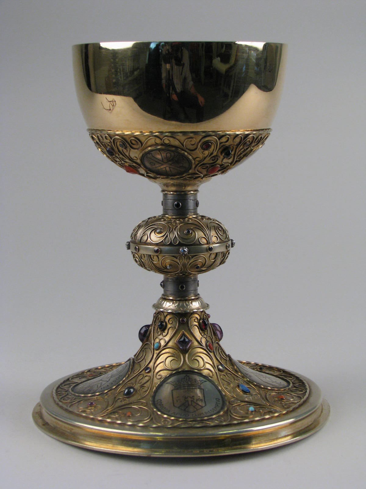 Kelk op ronde voet met medaillons in niëllo waarop wapen van de CssR, O.L.V. van Altijddurende Bijstand, Jozef en Alfonsus
