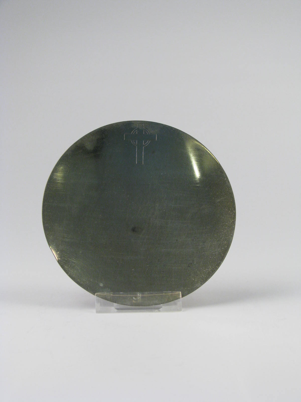 Pateen met gegraveerd kruisje met cirkel, voorzijde verguld koper, achterzijde verzilderd koper, niet behorend bij StCC m152a