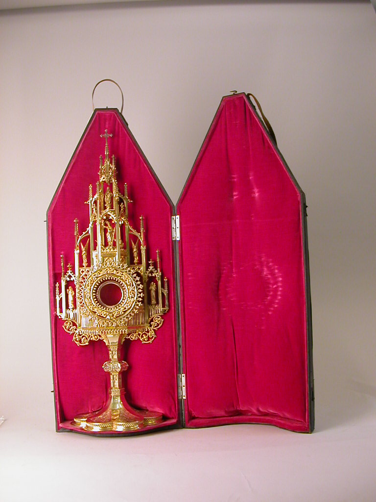 Monstrans met centraal opstanding van Christus, links Johannes, rechts Antonius van Padua