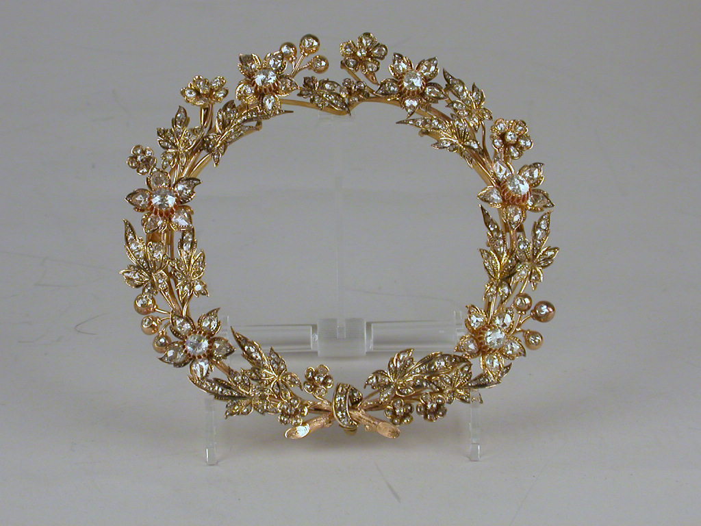 Vergulde appliek met bloemranken met diamanten, behorende bij StCC m157a