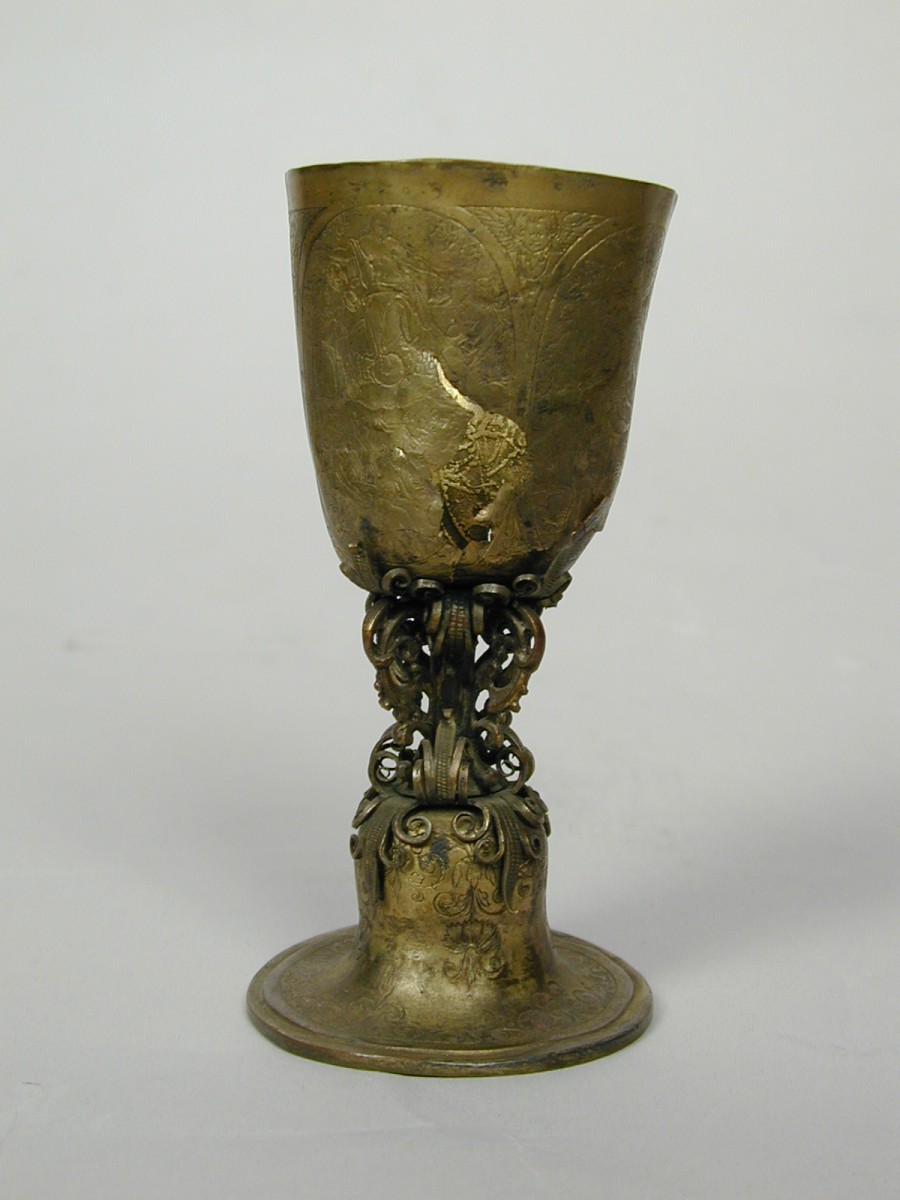 Reiskelk gegraveerd met Adam en Eva, de ark, de opstanding en het laatste oordeel