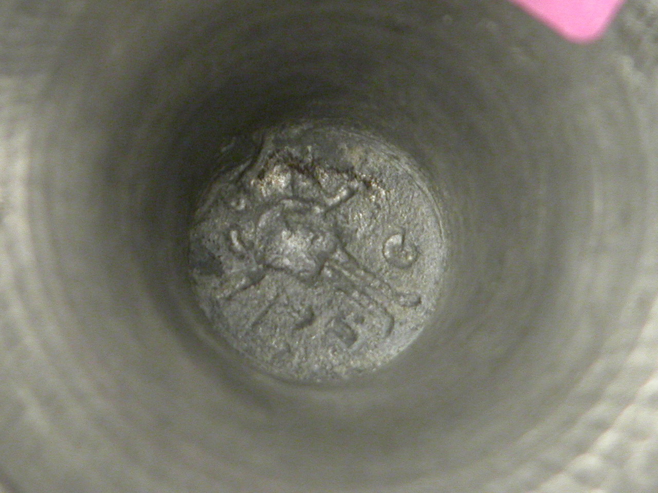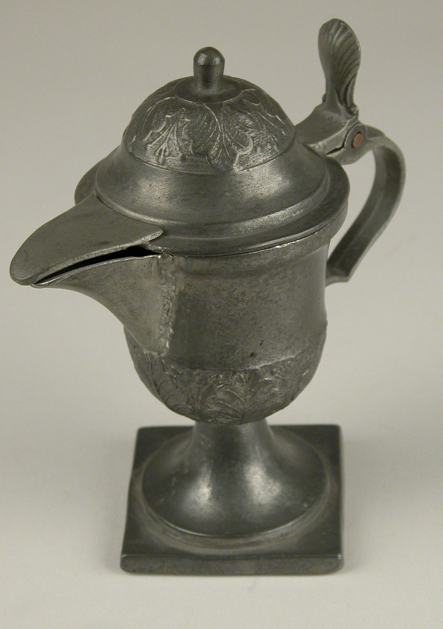 Tinnen ampul, onderkant versierd met acanthusbladeren