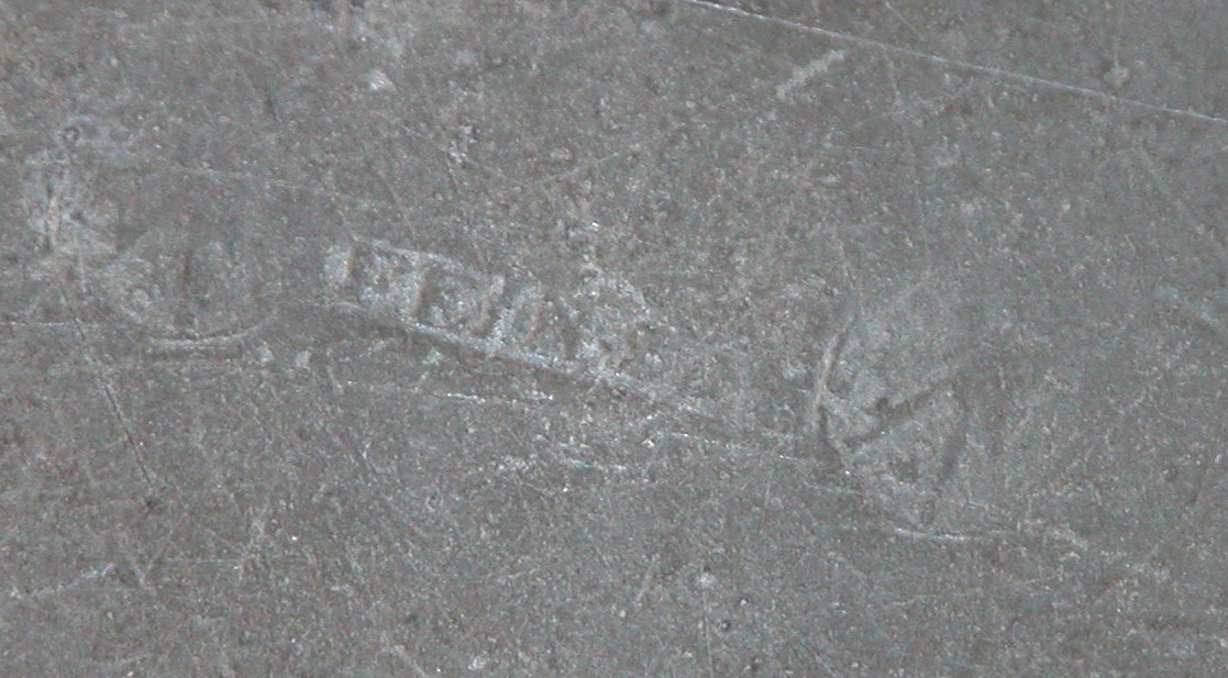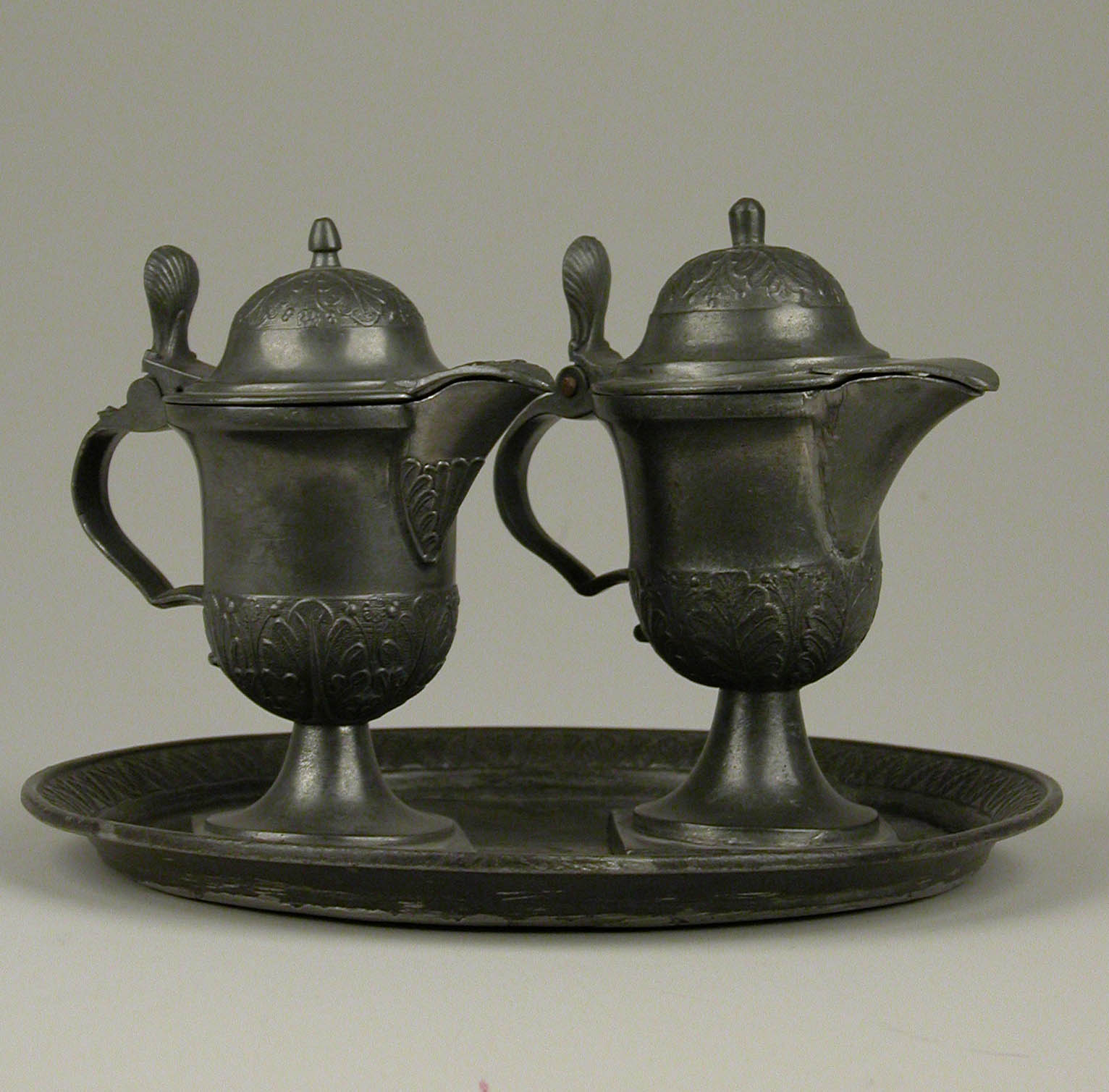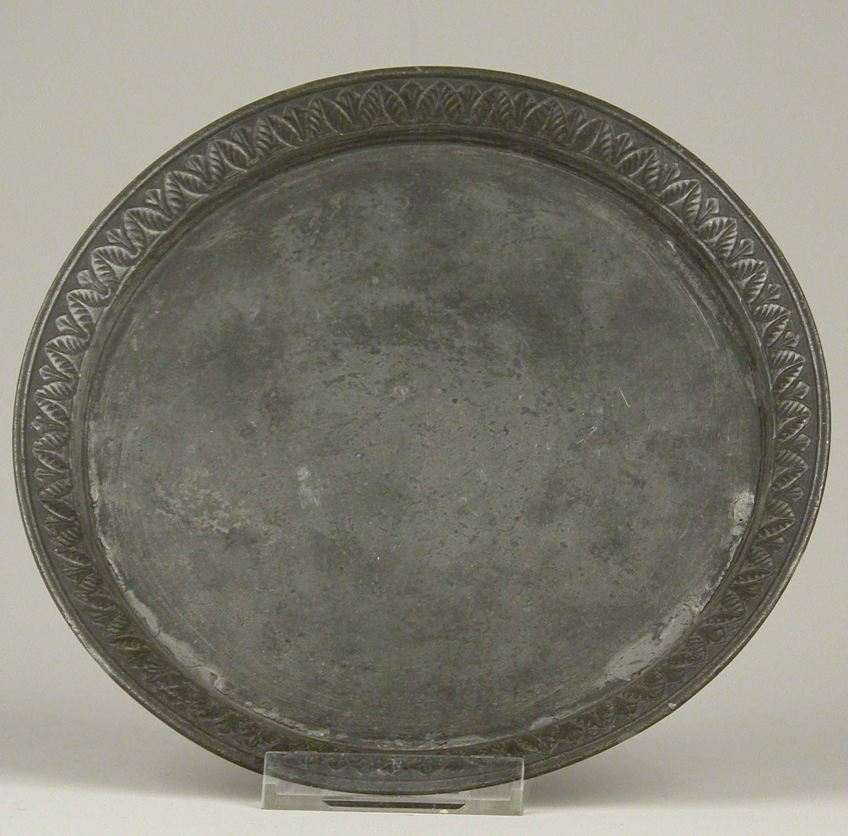 Tinnen ampullenblad, zijrand versierd met acanthusbladeren