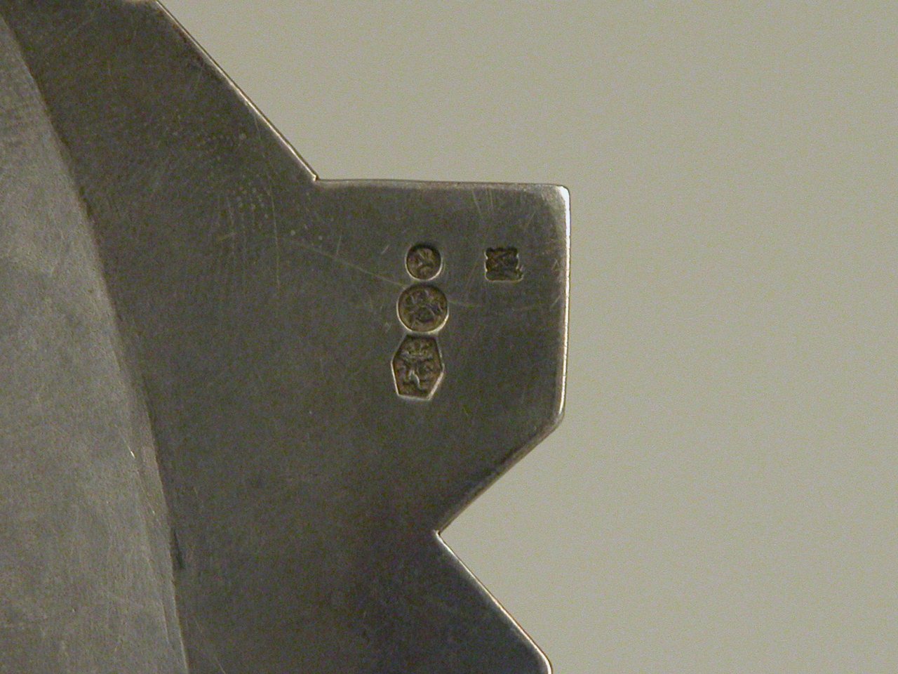 Zilveren veelhoekige pateen met vergulde bak met tien kruisjes in cirkel op rand