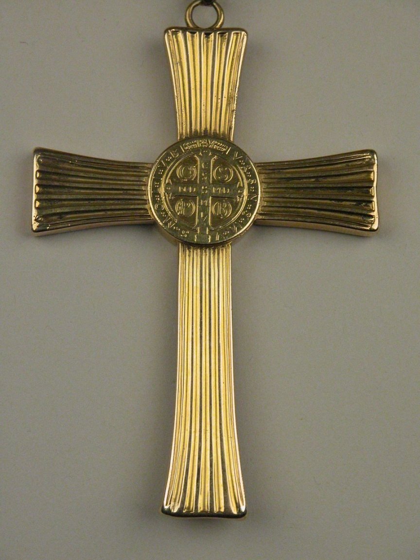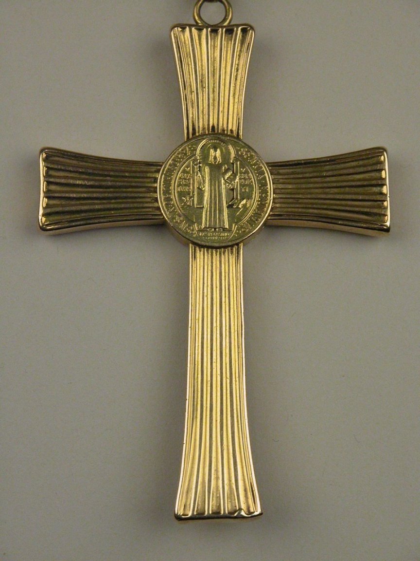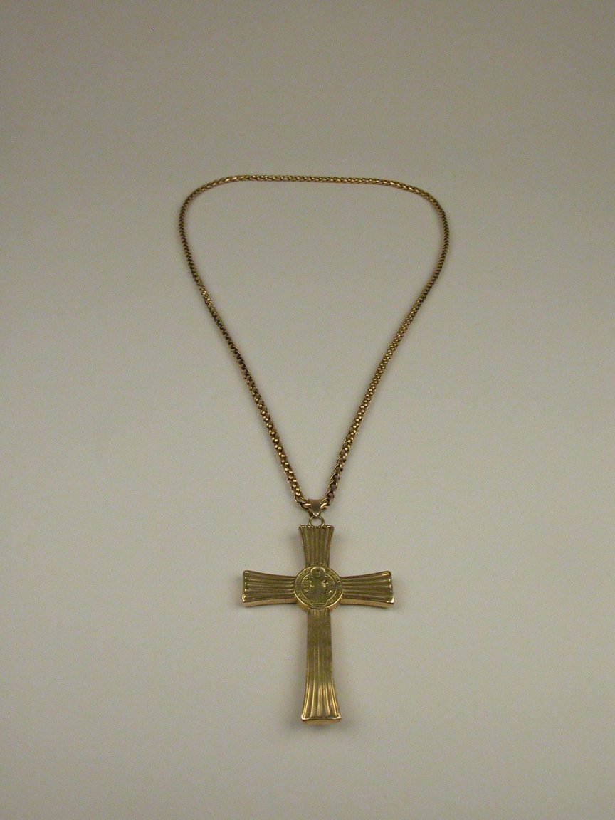 Borstkruis met Benedictusmedaille aan ketting
