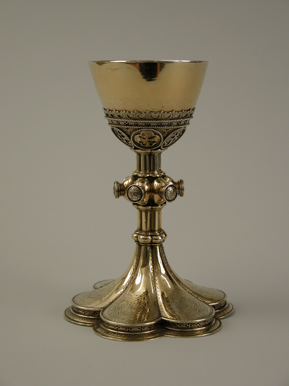 Kelk op zeslobbige voet, nodus met "Maria"