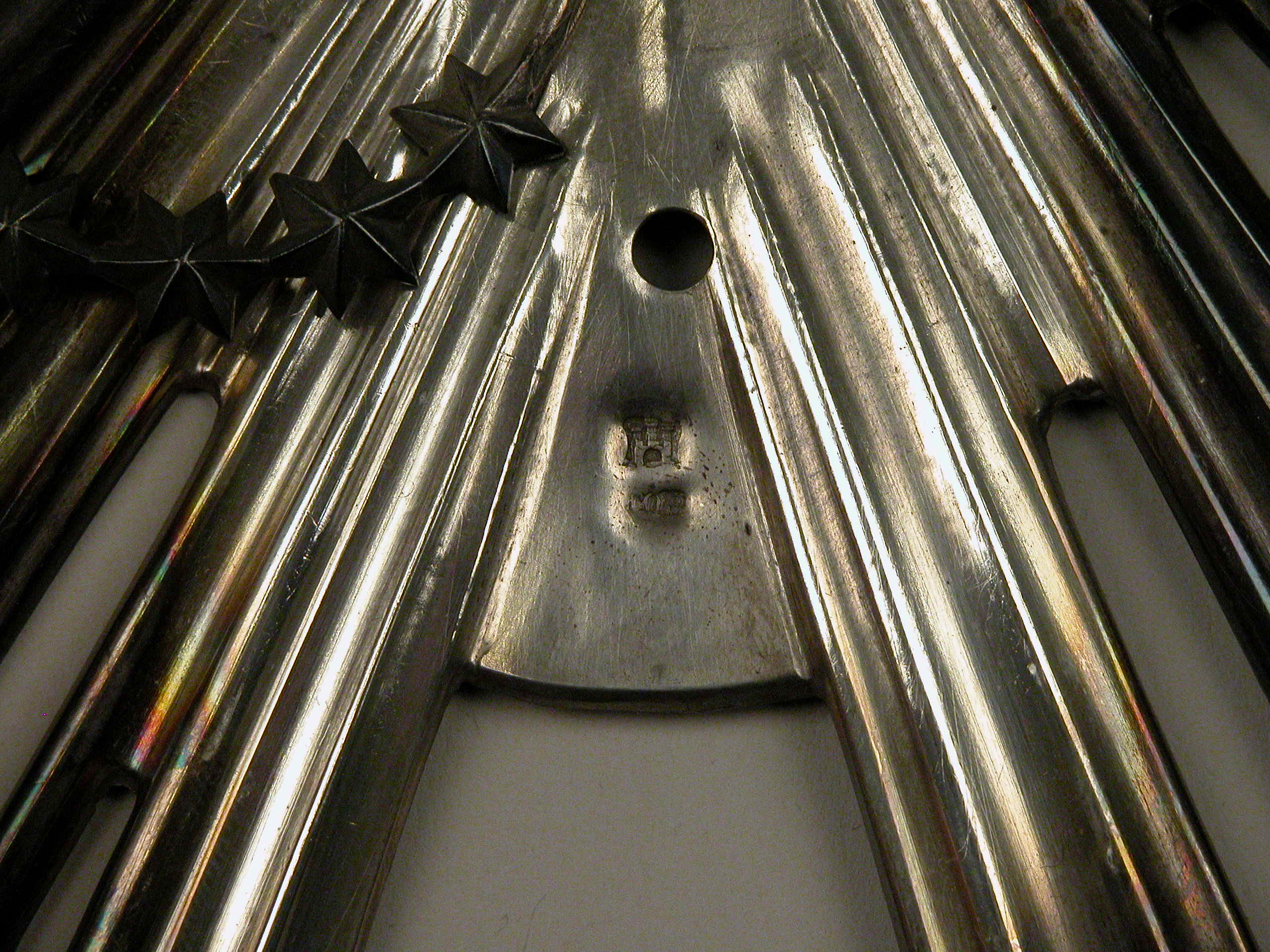 Reliëf van Maria op maansikkel in de wolken, de slang vertrappend
