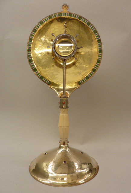 Monstrans op ronde voet met ivoren greep en ronde toonschelp, met verwijderbaar repositorium
