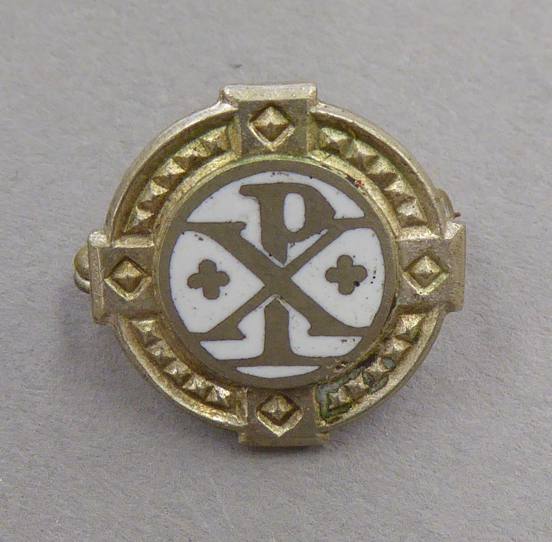 Draagspeld met twee vierpassen en Christusmonogram in witte cirkel
