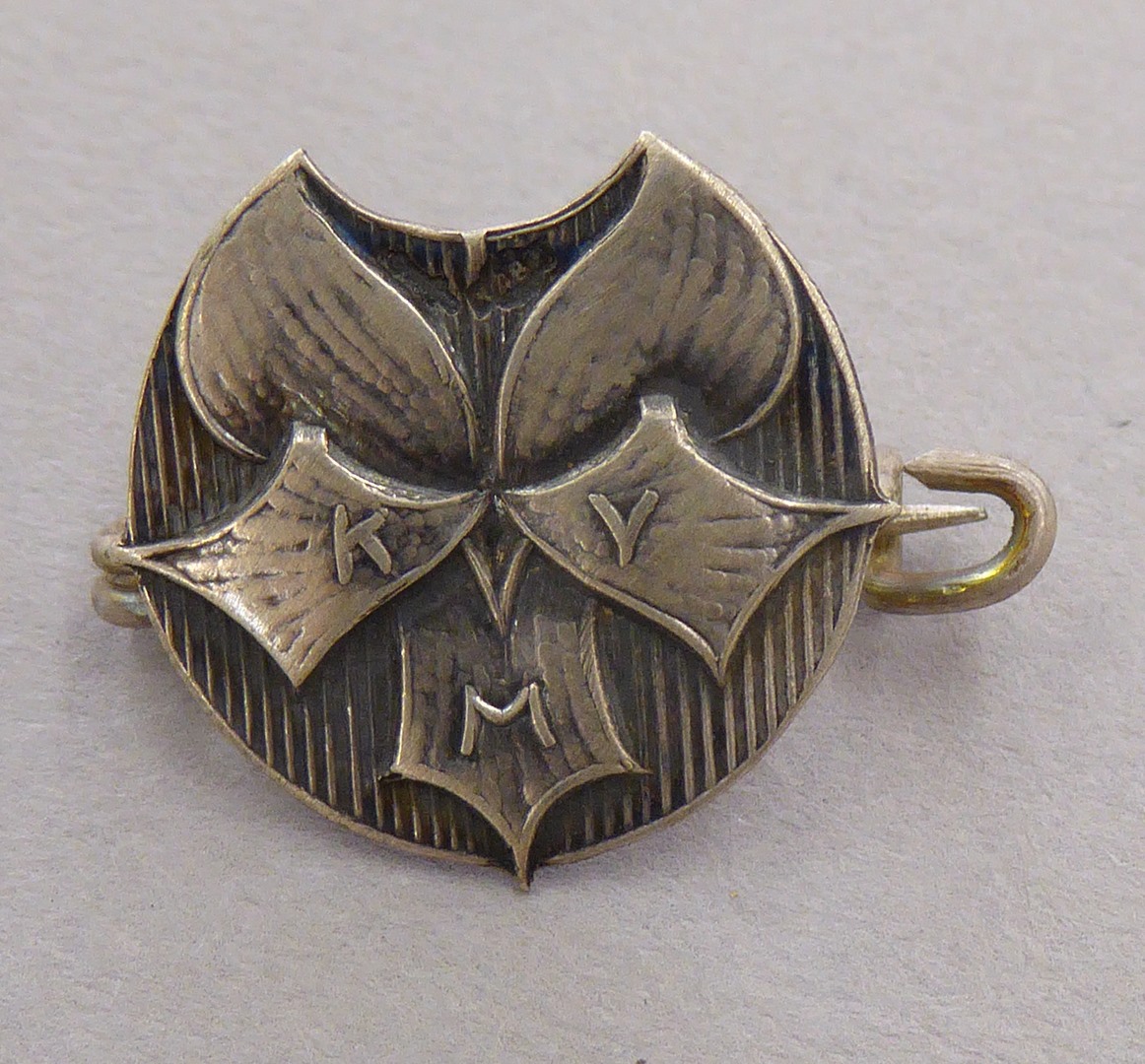 Draagspeld, onvolledige cirkel met "KMV" (Katholieke Meisjes Vereniging)