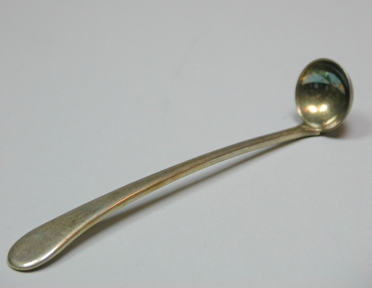 Kelklepeltje met lange uitlopende steel met druppelvormig uiteinde