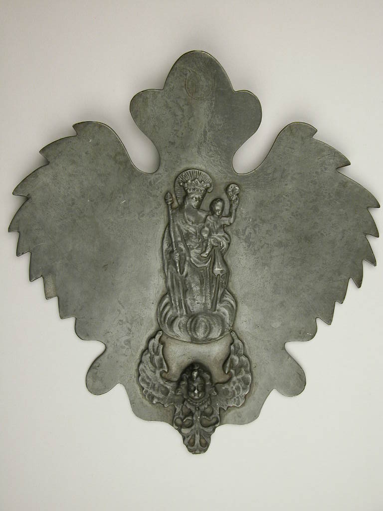 Plaquette in de vorm van een adelaar met Maria met kind