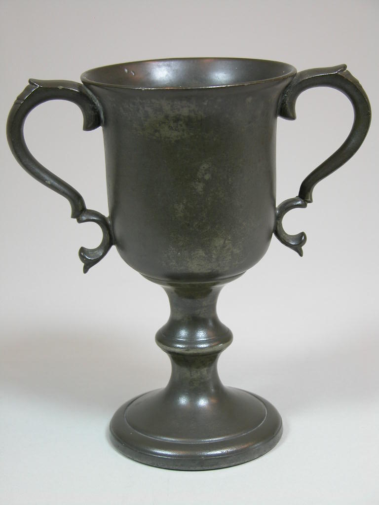 Beker op ronde voet met twee oren, met ringvormige nodus