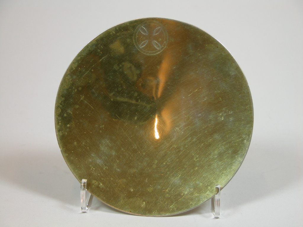 Pateen, glad met een gegraveerd kruisje in dubbele cirkel op rand