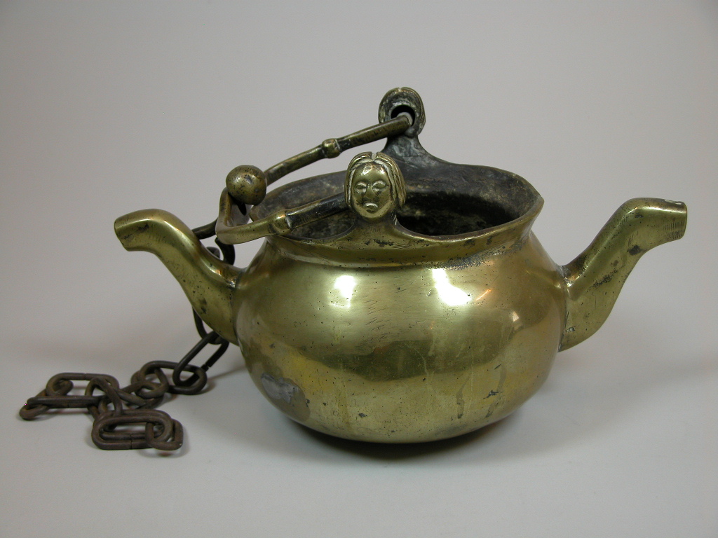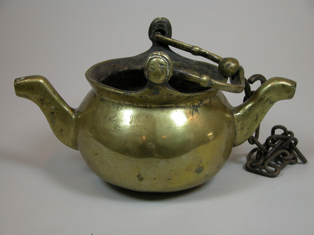 Lavaboketel met mensenhoofd op hengselpunten