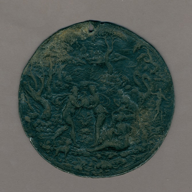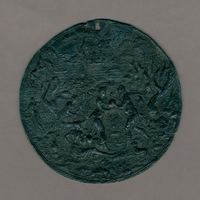 Reliëf met Eliëzer die Rebecca een ketting geeft